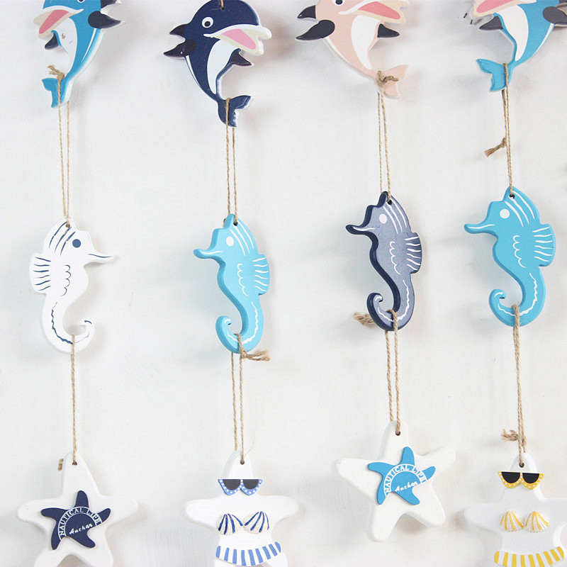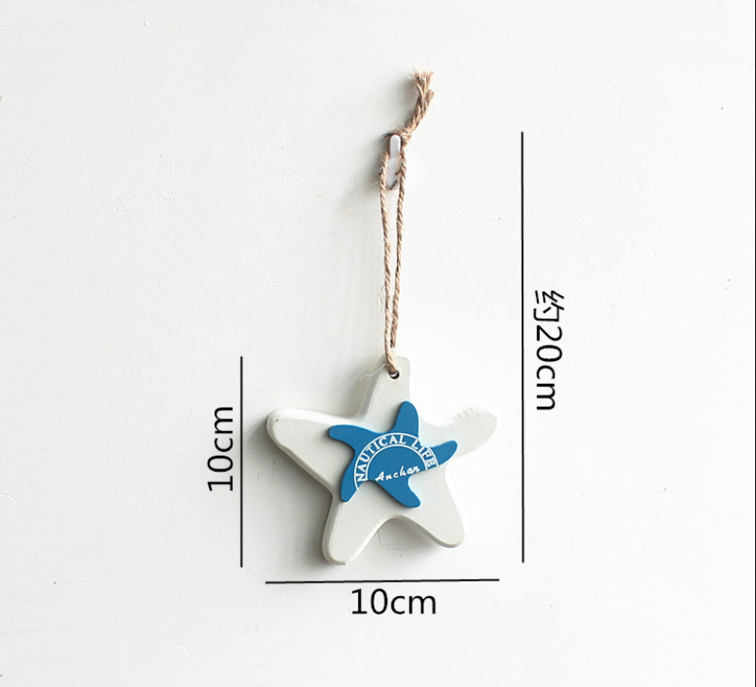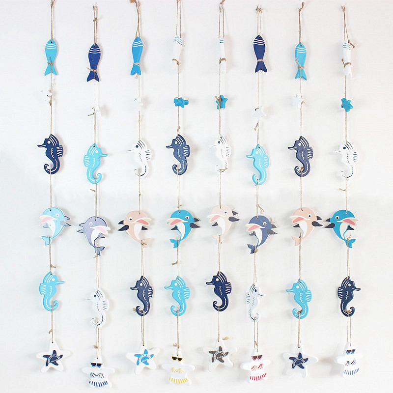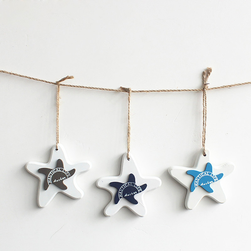 Mediterranean Creative Home Fishnet Accessories Starfish Solid Wood Small Fish Kebabs Pendant