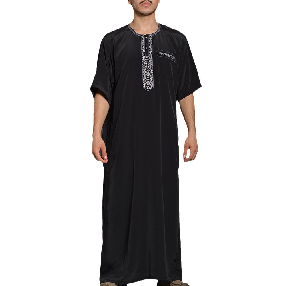 Medium Long Sleeve New Embroidery Men's Muslim Robe Arabic Robe