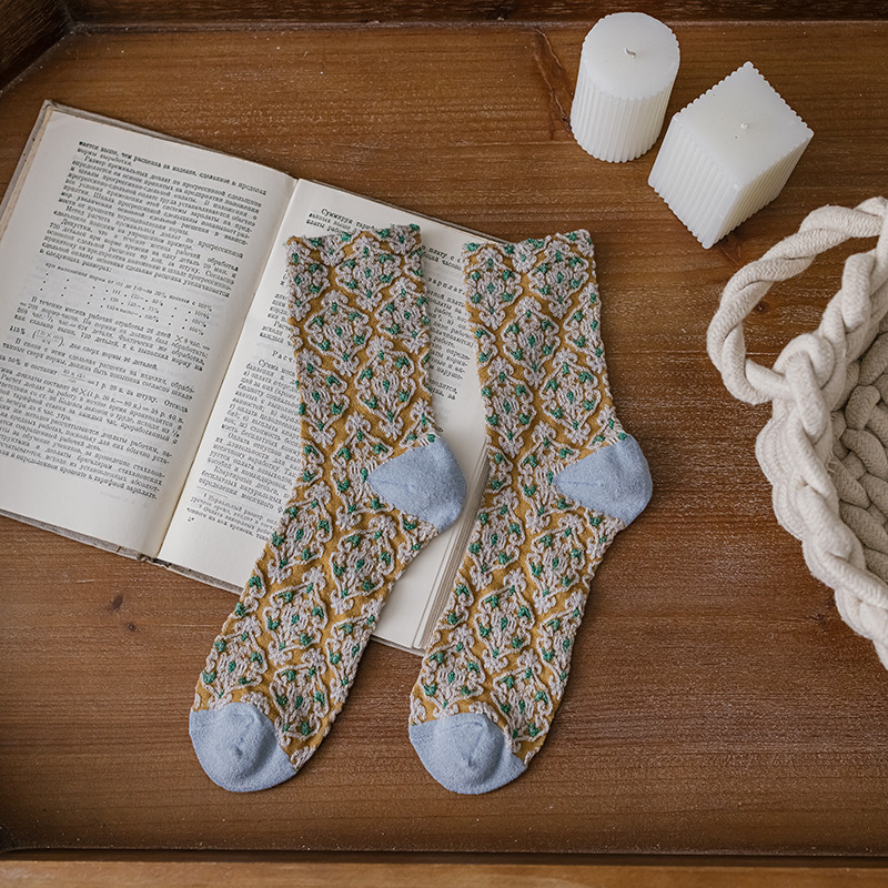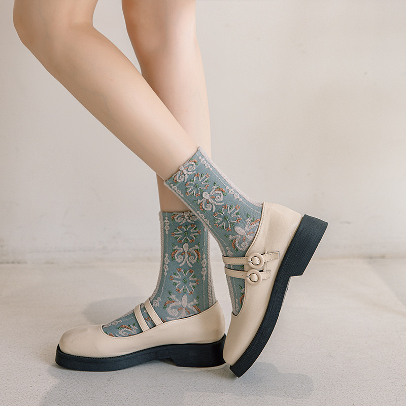 Color: Light green butterfly flower, green embellished retro flower, light green tree pattern turn-over yarn
