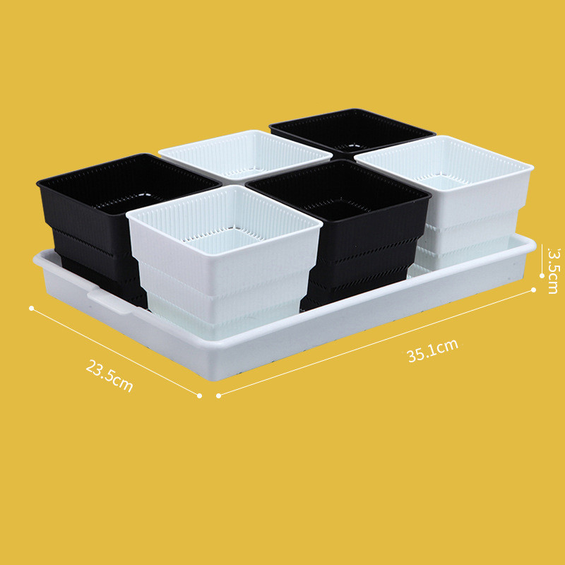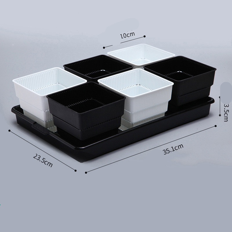 7 styles: small black tray + 6 black and white basins each