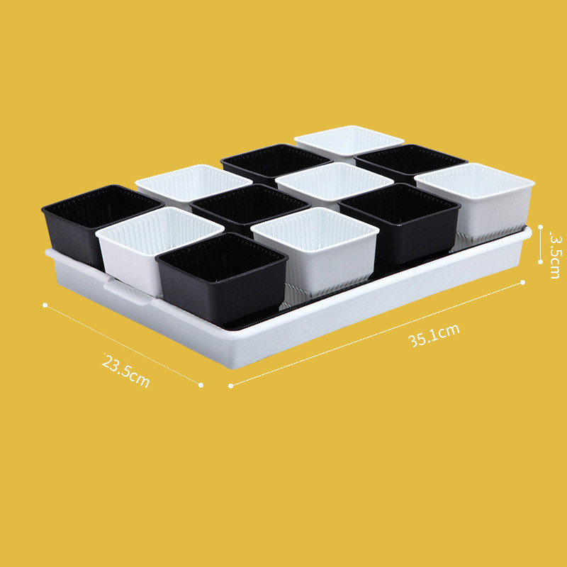 11 styles: small black tray + 12 white basins