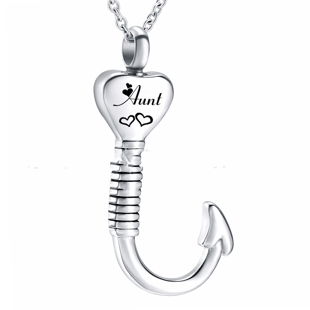 Memorial Relatives Ashes Necklace Heart-shaped Aunt Ashes Box Fishhook Pendant