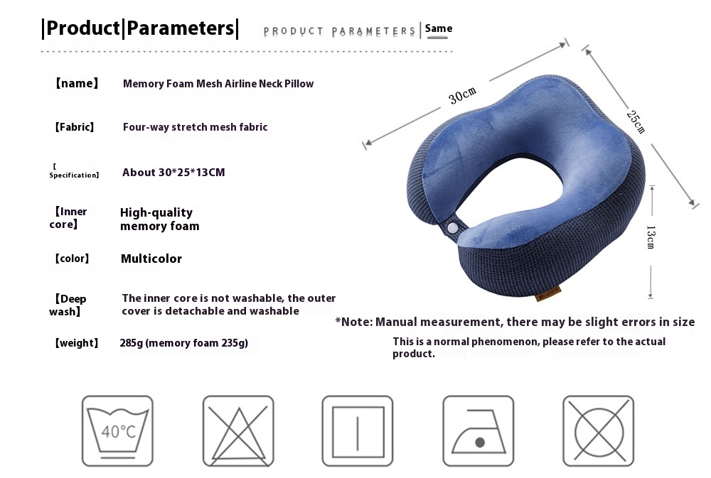 Memory Foam Slow Rebound Lunch Break Neck Protection Travel Mesh Fabric Hump U-shape Pillow