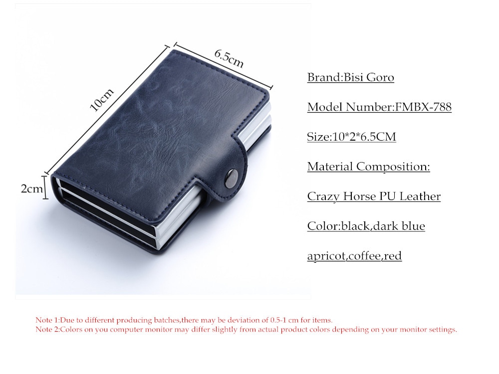 Men And Women Business Credit Card Holder Metal RFID Double Aluminium Box Crazy Horse Leather Travel Card Wallet