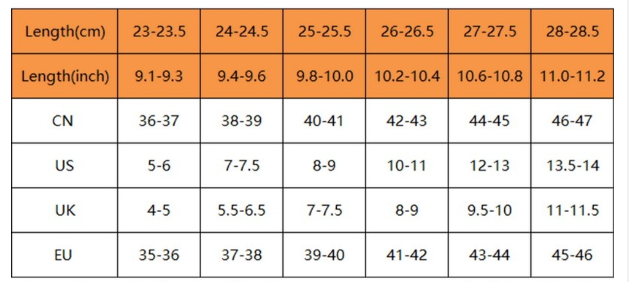 Size: 36/37 yards for 35-36 feet wear, 38/39 yards for 37-38 feet wear, 40/41 yards for 39-40 feet wear, 42/43 yards for 41-42 feet wear, 44/45 yards for 43-44 feet wear, 46/47 yards for 45-46 feet wear