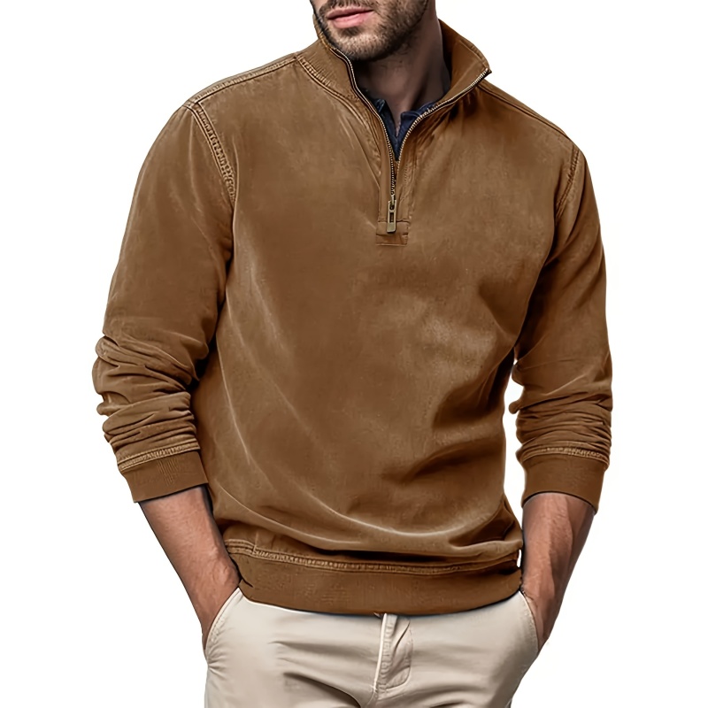 Men Faux Leather Sweatshirts Solid Color Stand Collar Zipper Long Sleeve Tops Fall Winter Casual Pullovers
