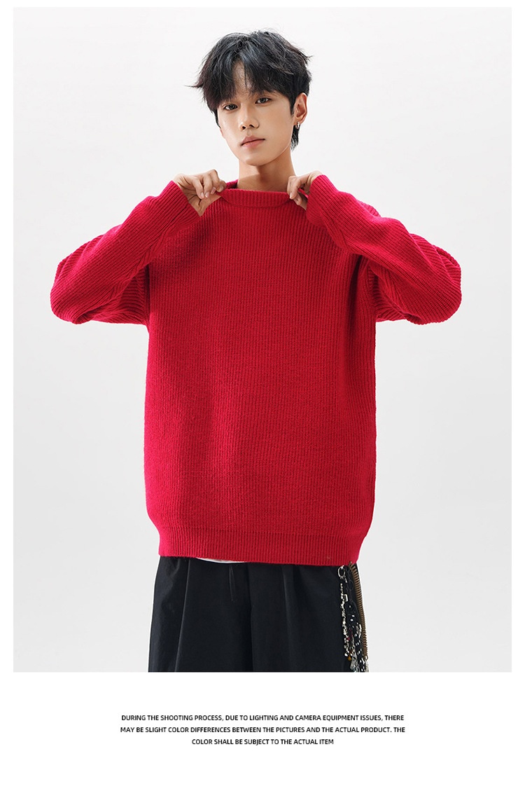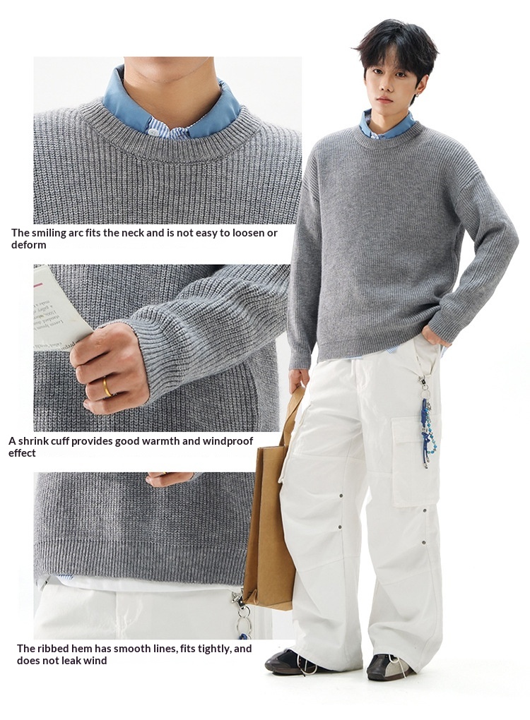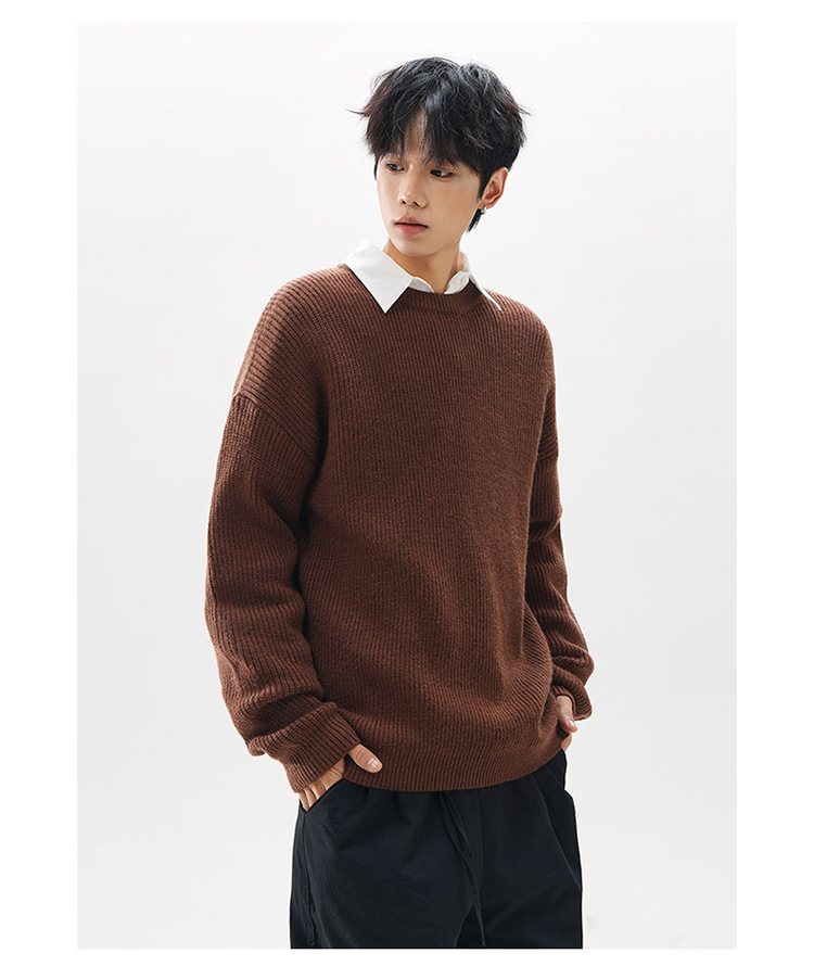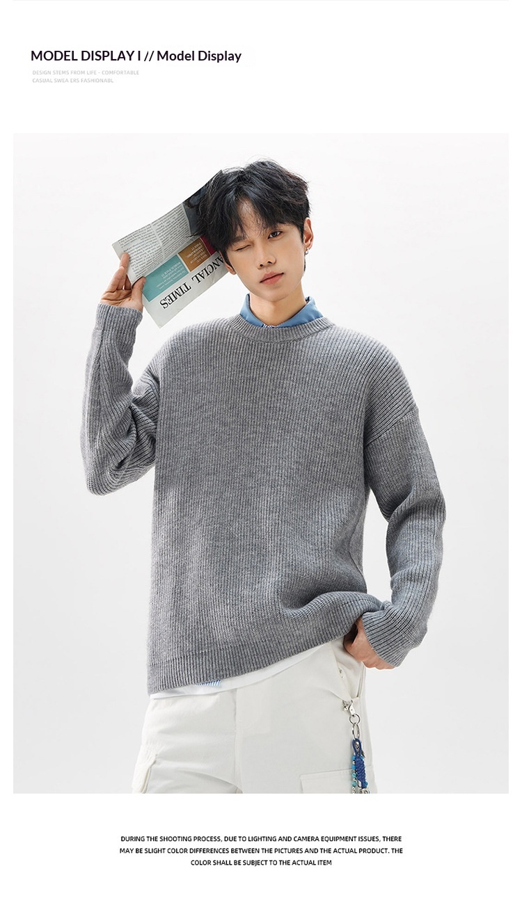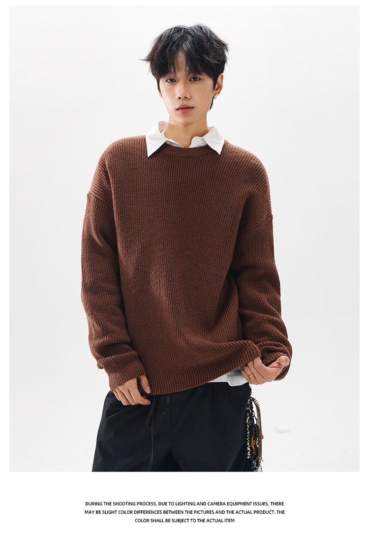Men Knitted Sweater Loose Fit Premium Feel Crew Neck Pullover