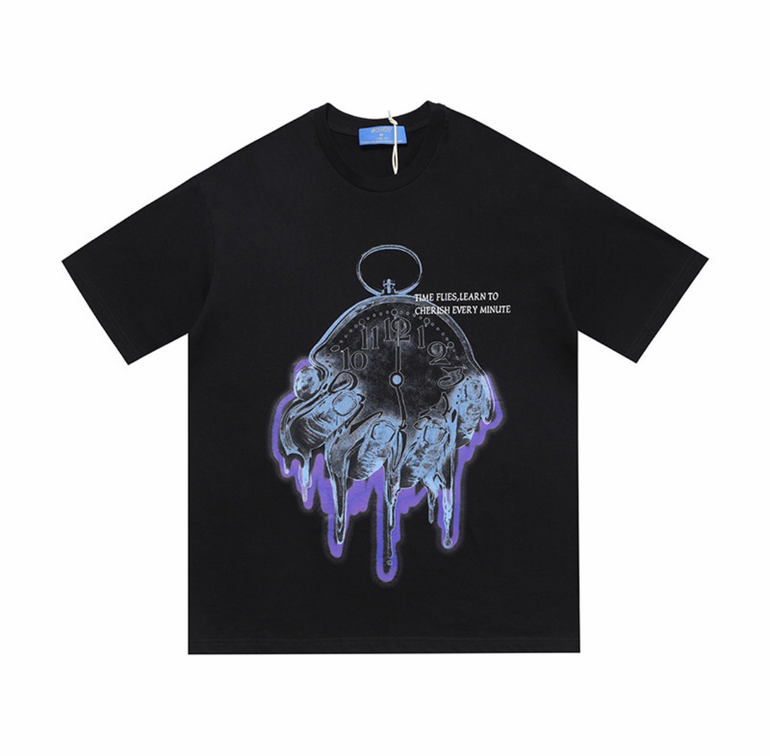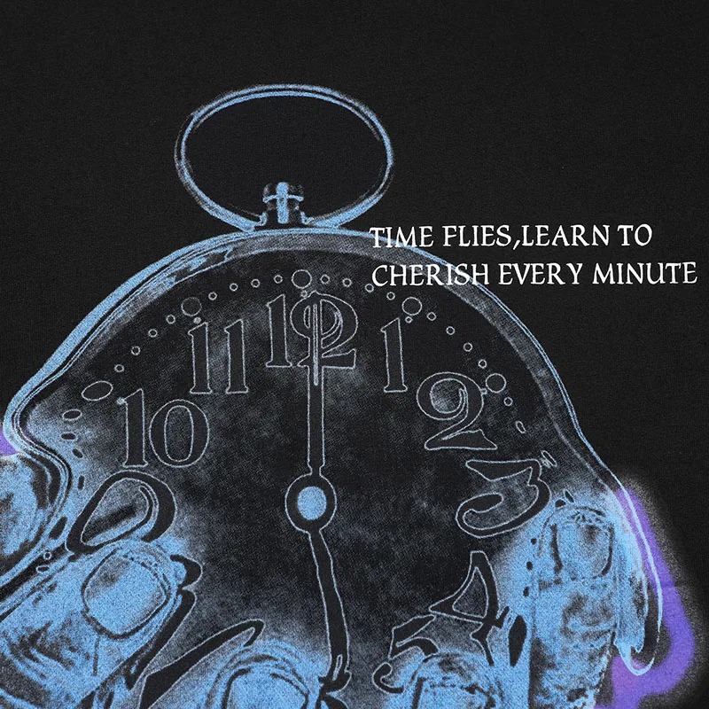 Men Streetwear Clock Time Flies Graphic T Shirt