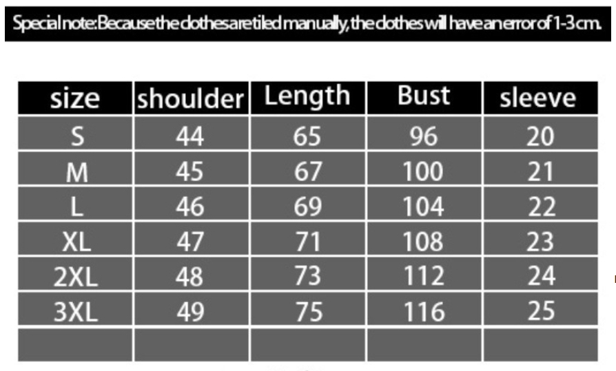 1. Asian sizes are 1 to 2 sizes smaller than European and American people. Choose the larger size if your size between two sizes. Please allow 2-3cm differences due to manual measurement. 2. Please check the size chart carefully before you buy the item, if you don't know how to choose size, please contact our customer service. 3.As you know, the different computers display colors differently, the color of the actual item may vary slightly from the following images.