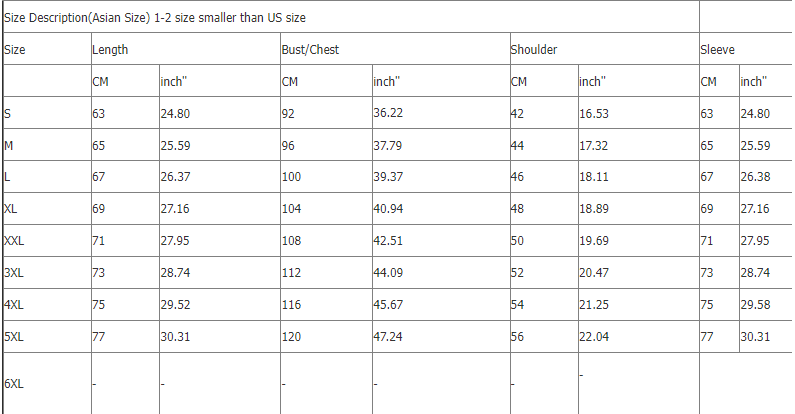 1. Asian sizes are 1 to 2 sizes smaller than European and American people. Choose the larger size if your size between two sizes. Please allow 2-3cm differences due to manual measurement. 2. Please check the size chart carefully before you buy the item, if you don't know how to choose size, please contact our customer service. 3.As you know, the different computers display colors differently, the color of the actual item may vary slightly from the following images.