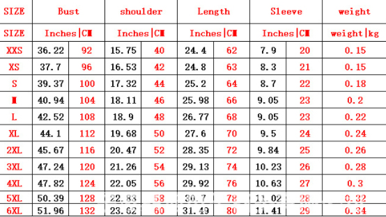 Size: XS,S,M,L,XL,2XL,3XL,4XL