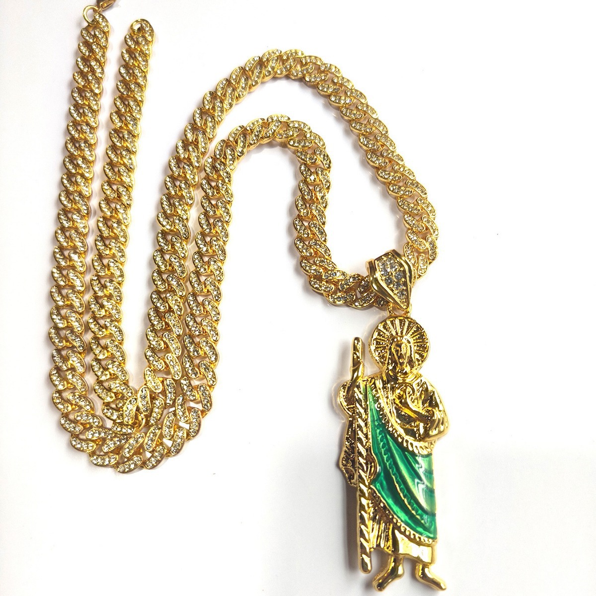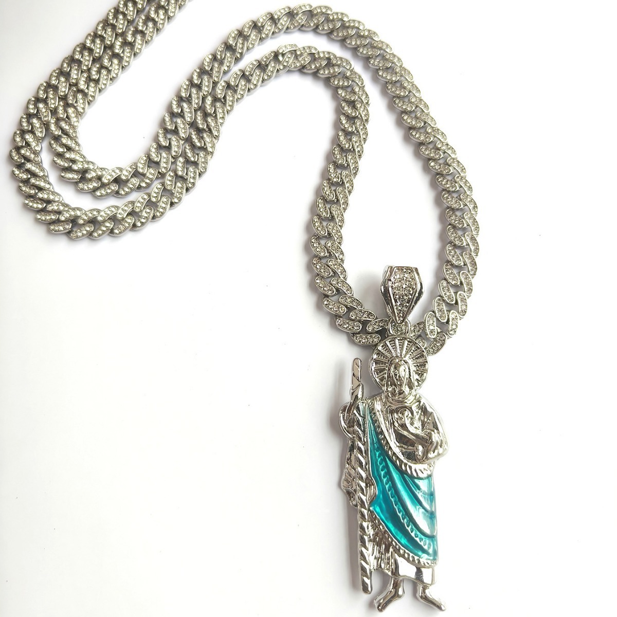 Color: gold single pendant (pink), Gold single pendant (green), Gold single pendant (blue), Gold single pendant, Silver single pendant (pink), silver single pendant (green), Silver single pendant (blue), Silver single pendant, gold with 20inch Cuban link chain (pink), gold with 20inch Cuban link chain (green), gold with 20inch Cuban link chain (blue), gold with 20inch Cuban link chain, silver with 20inch Cuban link chain (pink), silver with 20inch Cuban link chain (green), silver with 20inch Cuban link chain (blue), silver with 20inch Cuban link chain