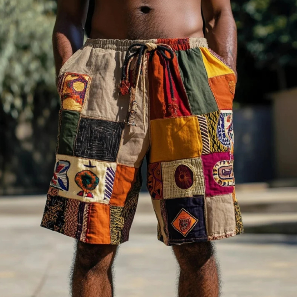 Men's African Ethnic Patchwork Casual Linen Shorts