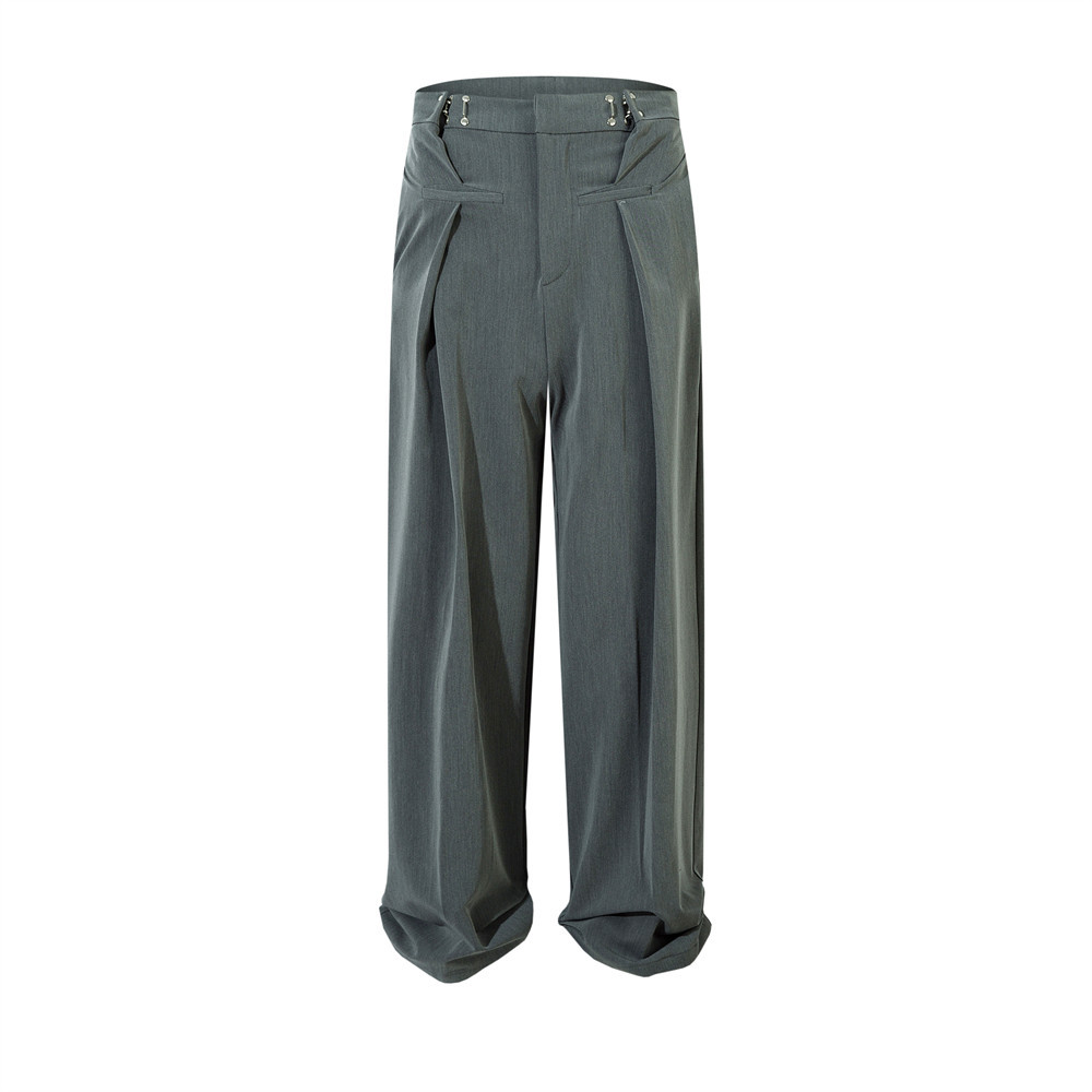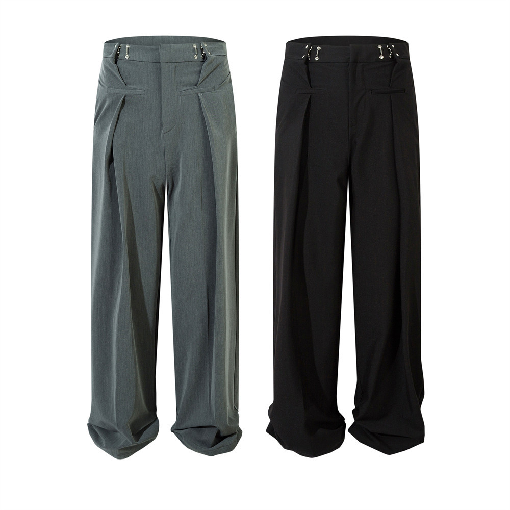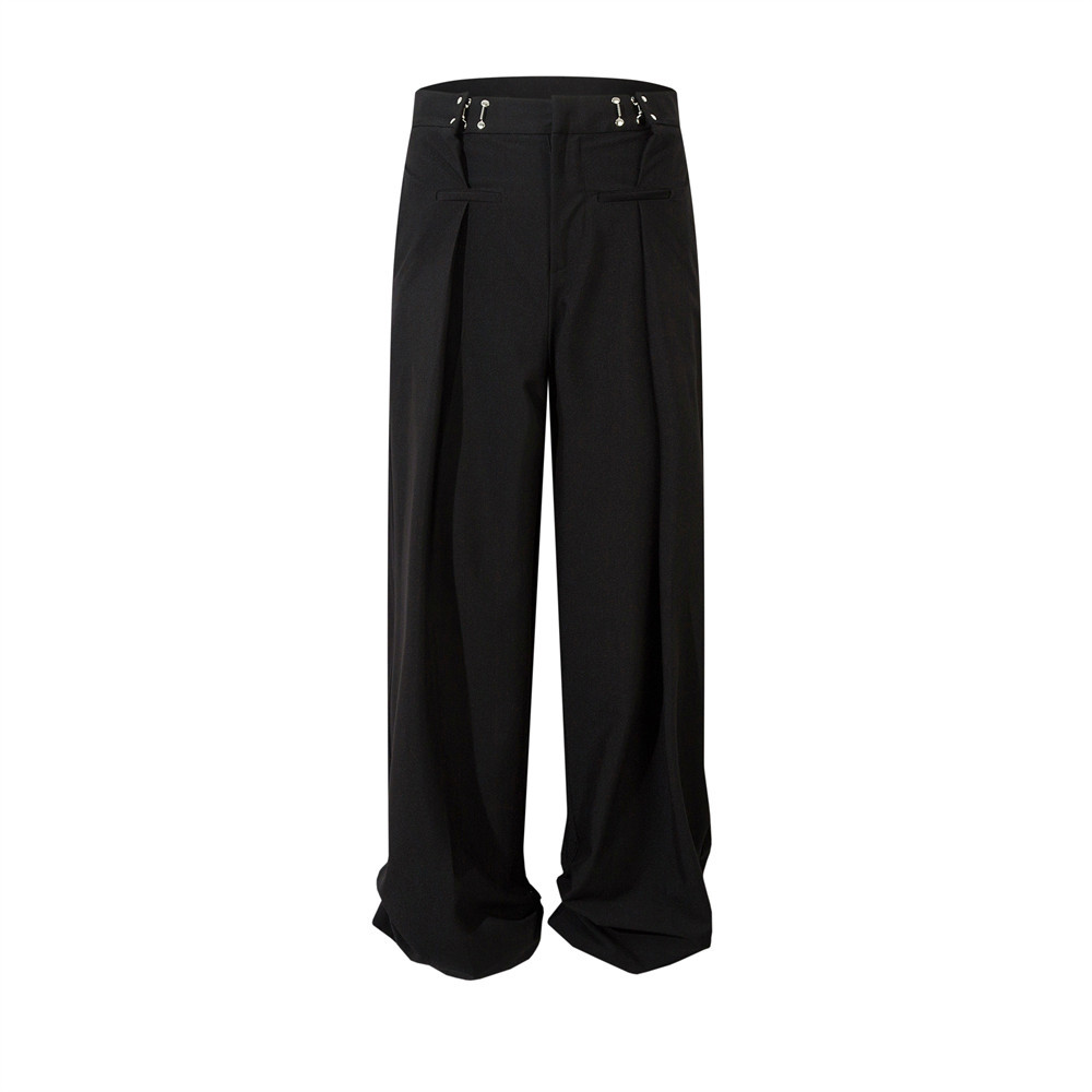 Men's American High Street Fashionable Metal Buckle Design Sense Wide-leg Draggle-tail Trousers