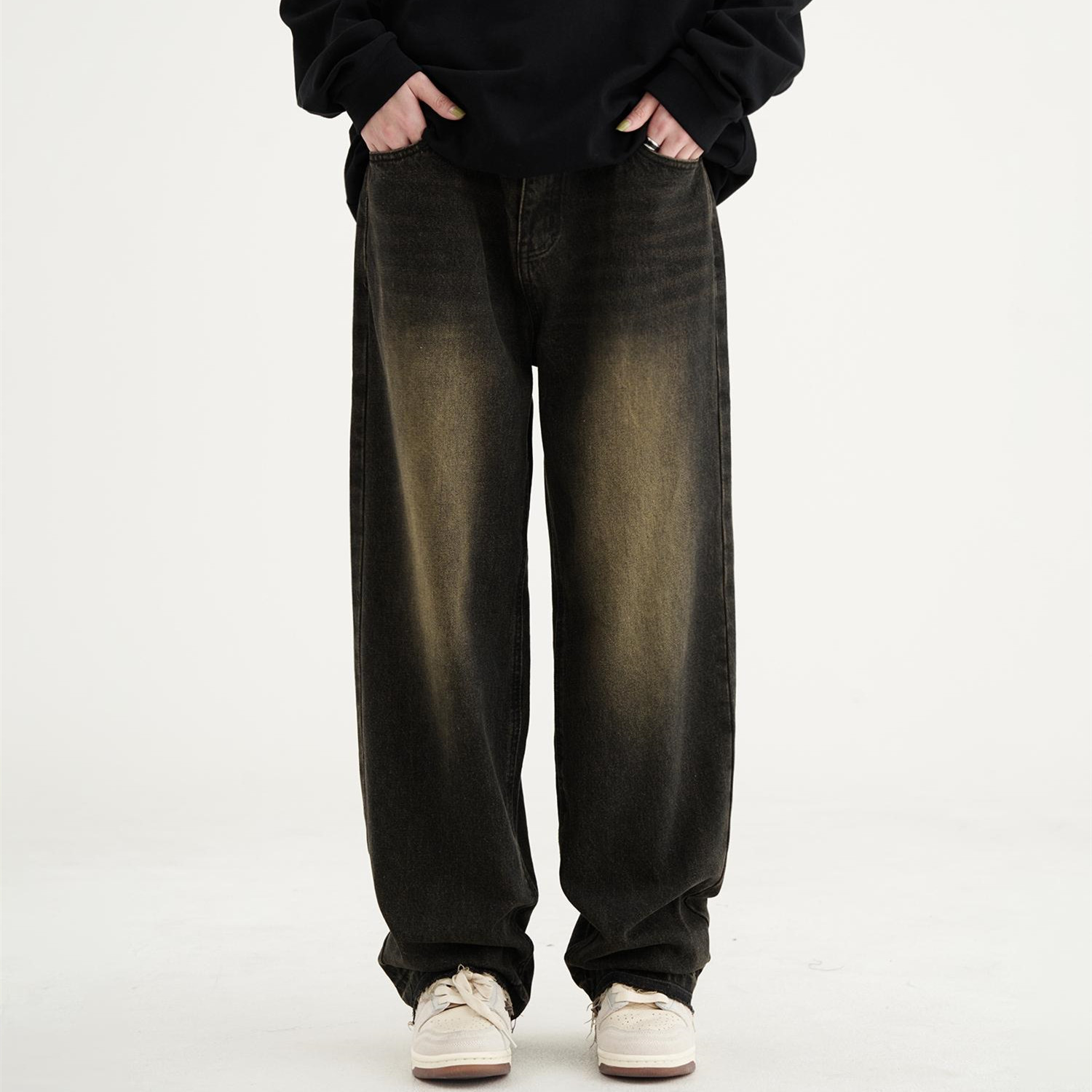 Men's American-style Retro Black Washed Jeans