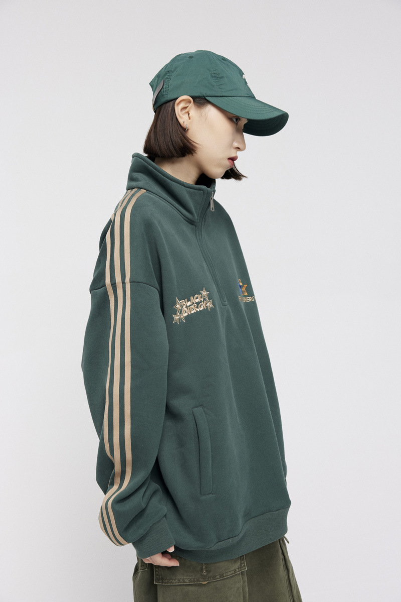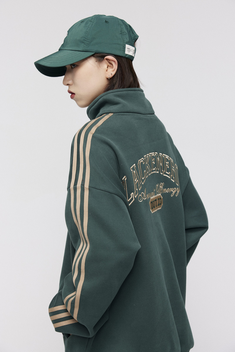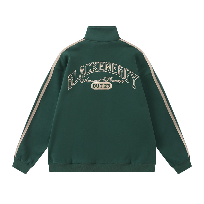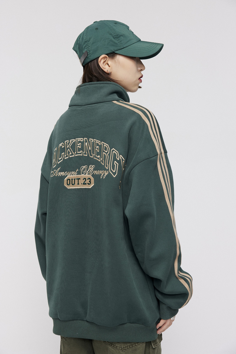 Men's American-style Retro Street Striped With Fleece Lining Half Zipper Jacket