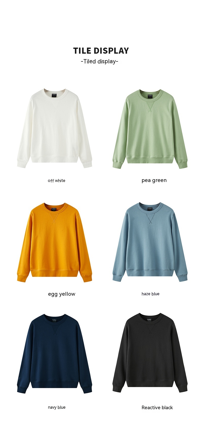 Colors: black, navy blue, off white, bean green, egg yellow, haze blue