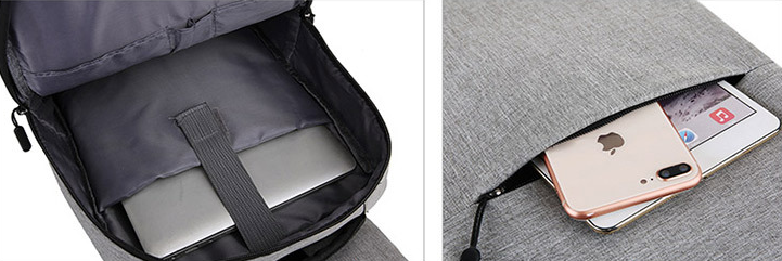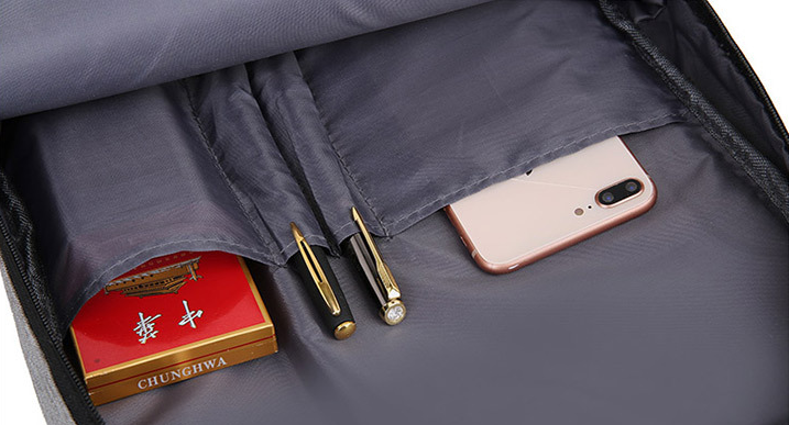 Package internal structure: ID bag, mobile phone bag, laminated zipper bag, zipper pocket, computer pocket, camera pocket