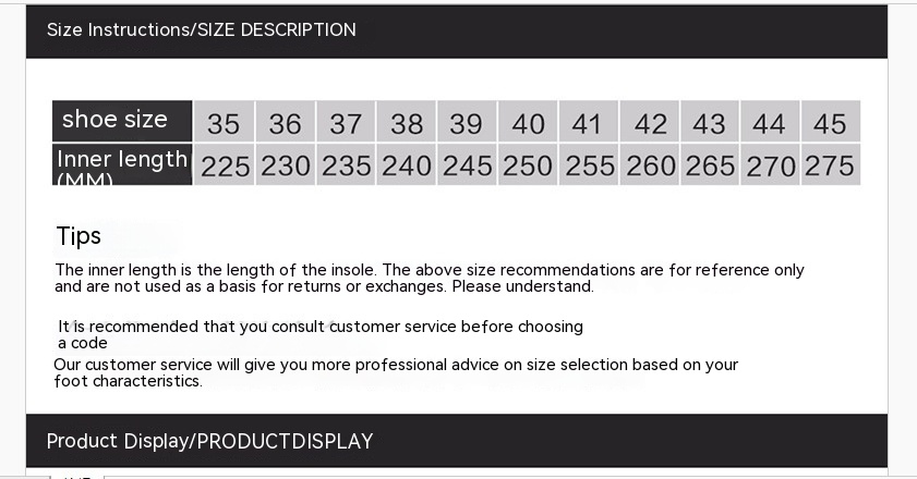 Size: 35, 36, 37, 38, 39, 40, 41, 42, 43, 44, 45
