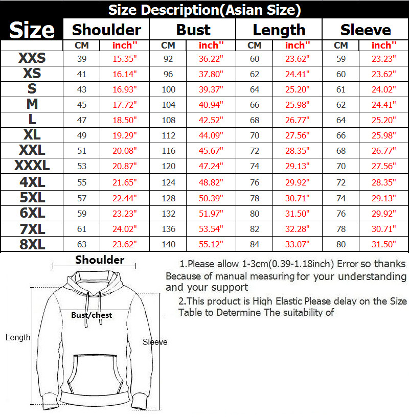 Note:1. Asian sizes are 1 to 2 sizes smaller than European and American people. Choose the larger size if your size between two sizes. Please allow 2-3cm differences due to manual measurement.