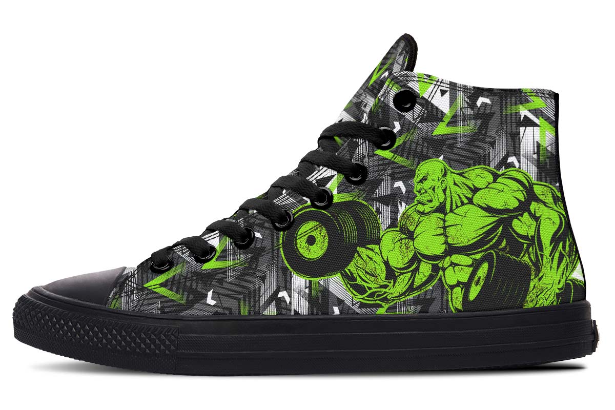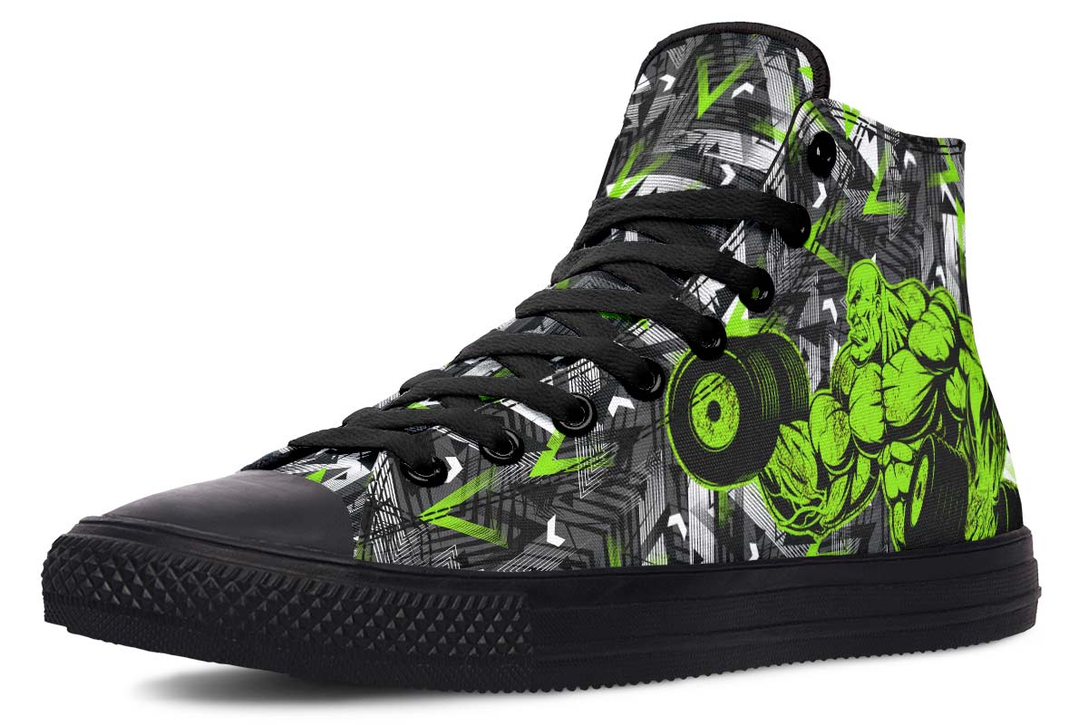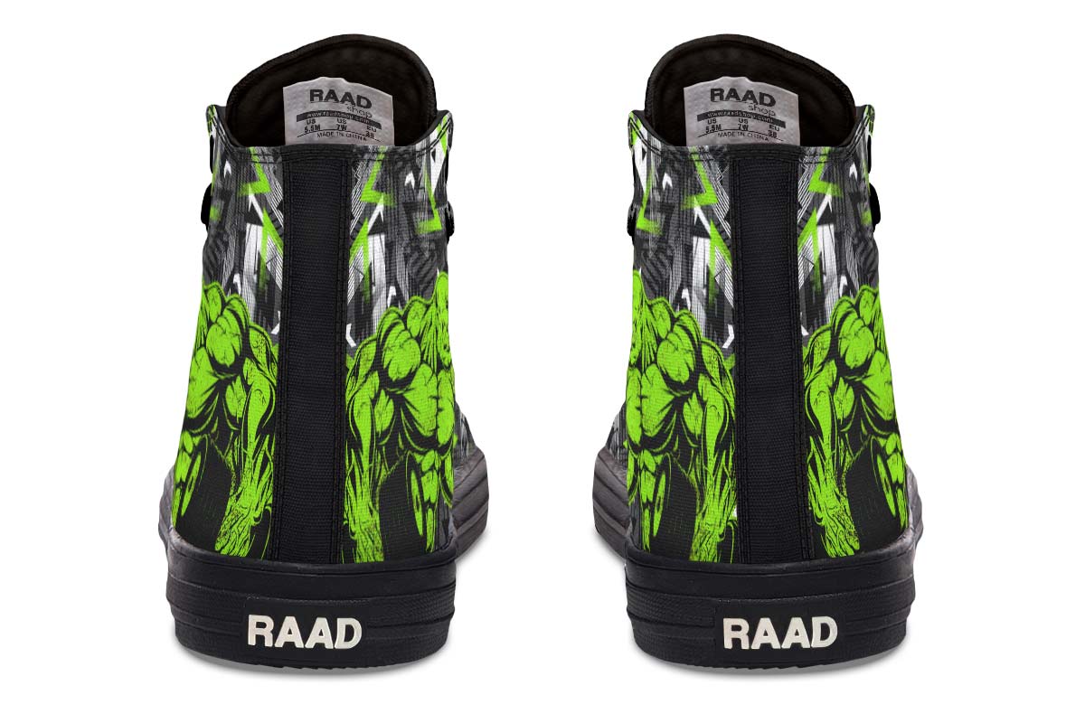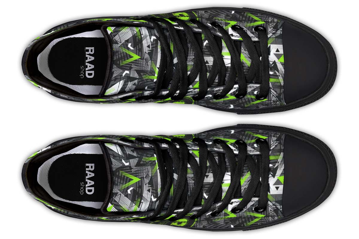 • Hand and custom printed high-tops
