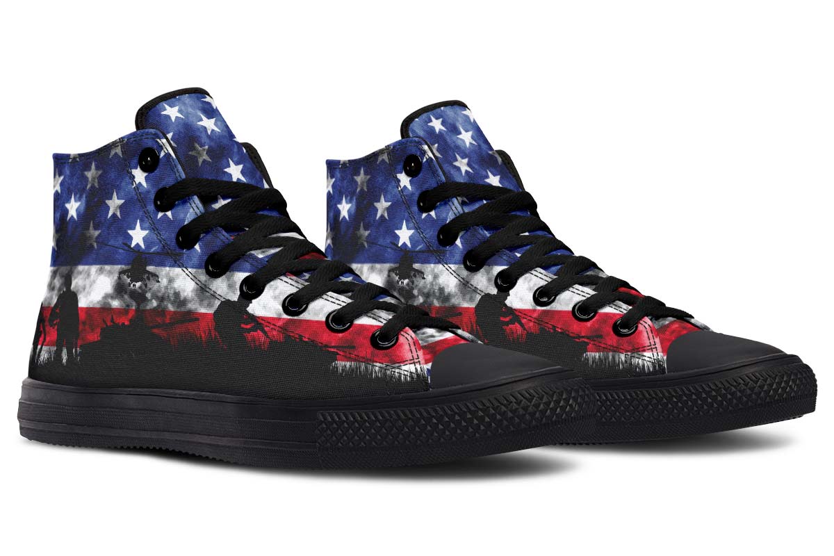 • Hand and custom printed high-tops