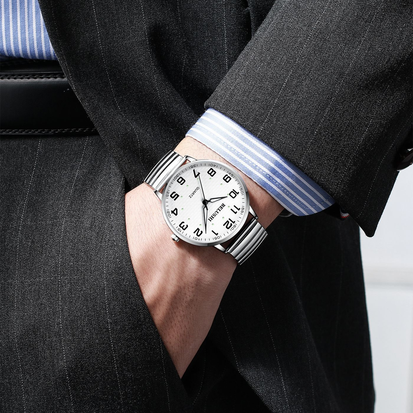 Color: B- 558 men's silver case white surface steel belt, B- 558 men's gold shell white surface gold steel belt, B- 558 silver style women's silver case white surface steel belt, B- 558 women's gold shell white surface gold steel belt, B- 559 men's silver case white surface steel belt, b-559 white surface men's gold steel belt, B- 559 men's silver Case White Spring surface steel belt, B- 559 women's silver case white surface steel belt, B- 559 white surface women's gold steel belt, B- 559 silver style women's silver Case White Spring surface steel belt