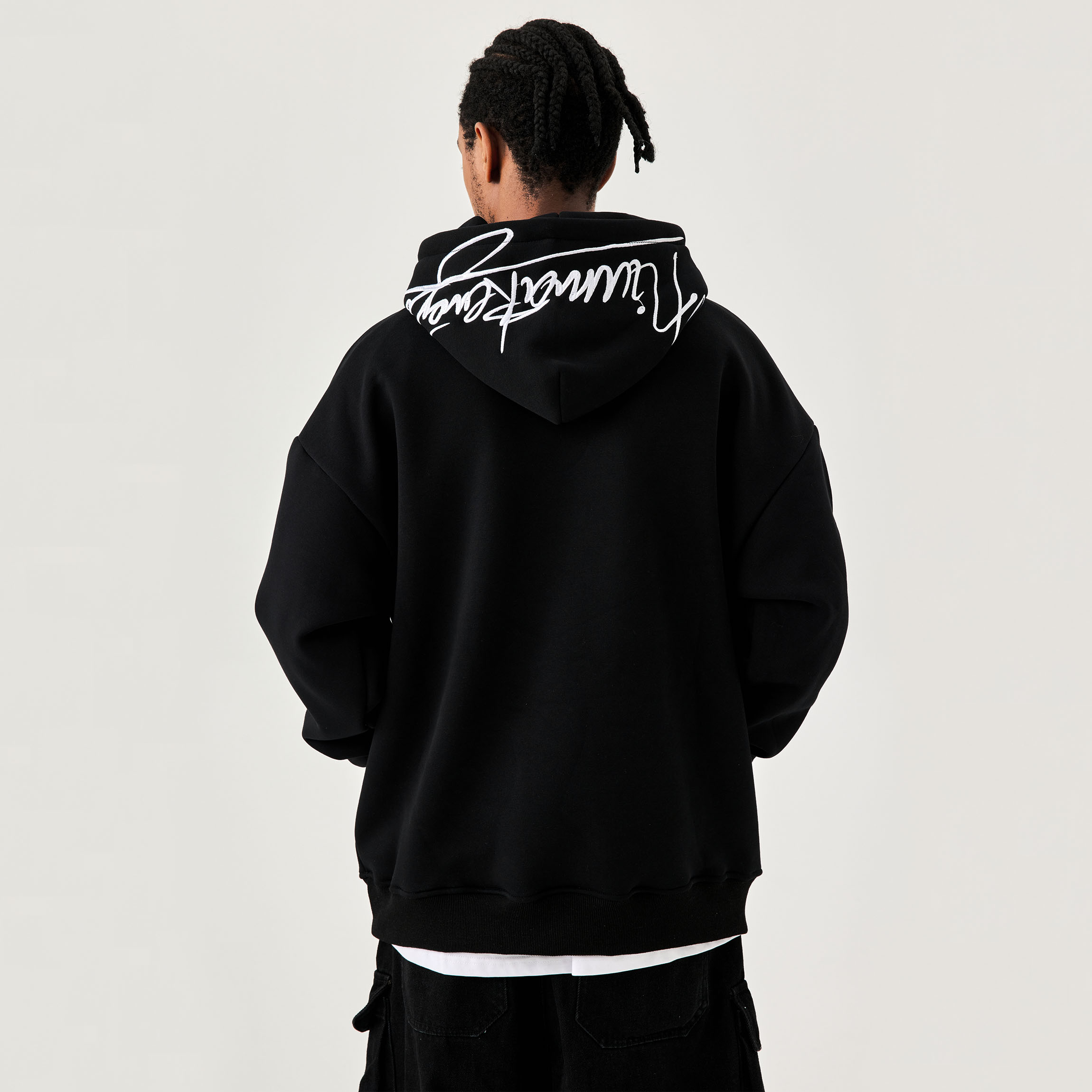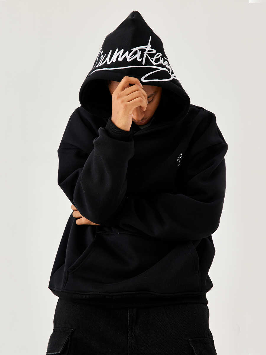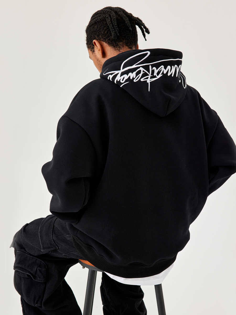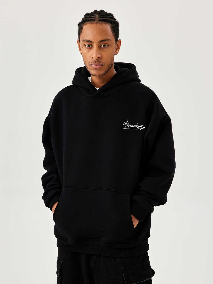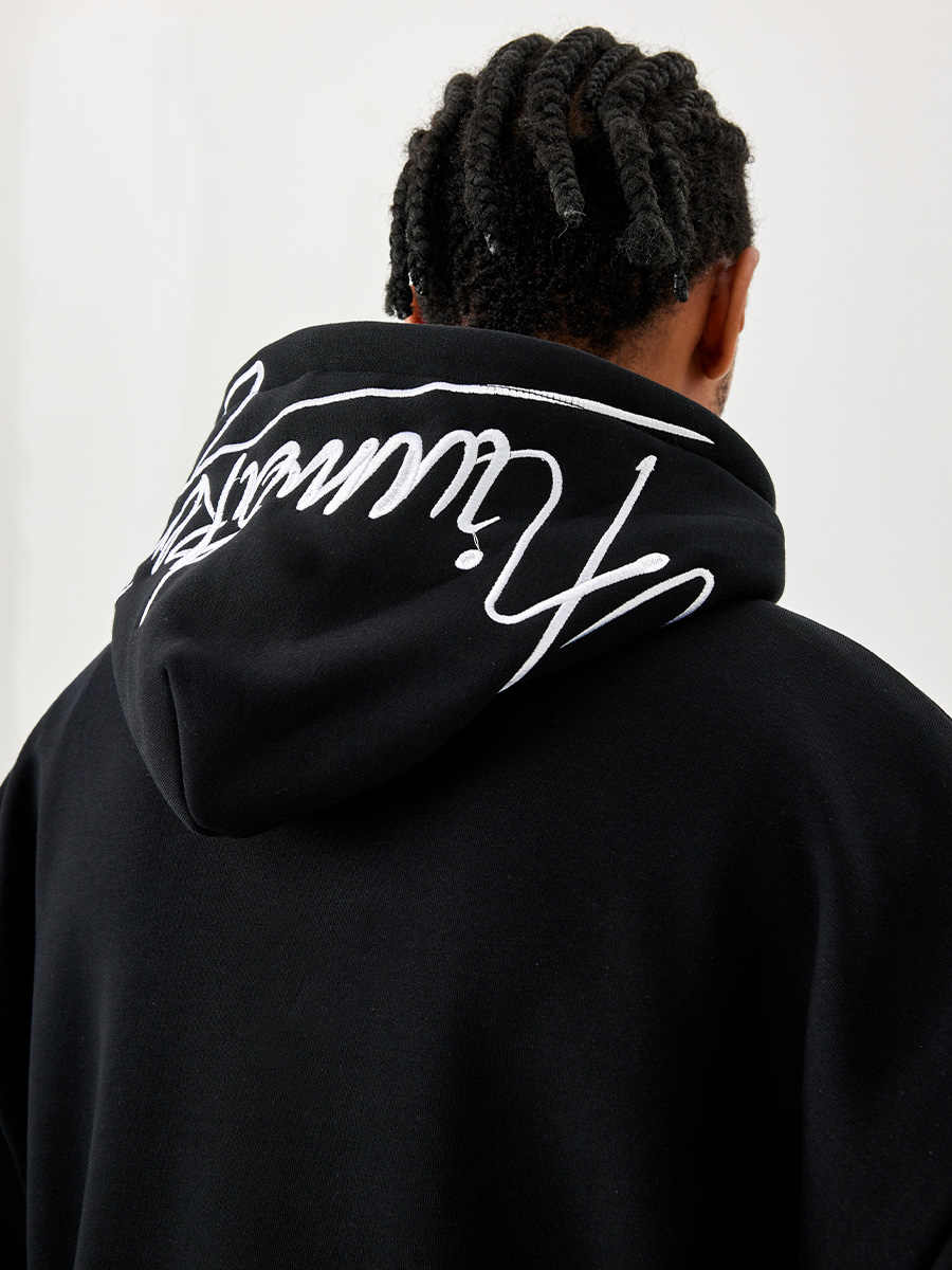 Men's And Women's Fleece-lined Black Embroidered Letter Hooded Sweater