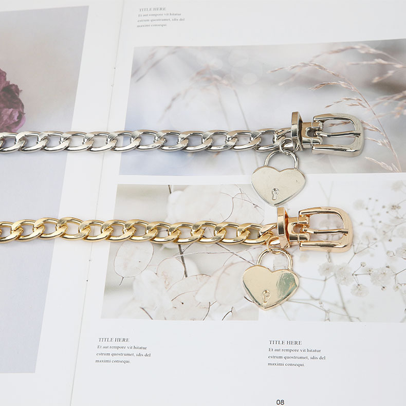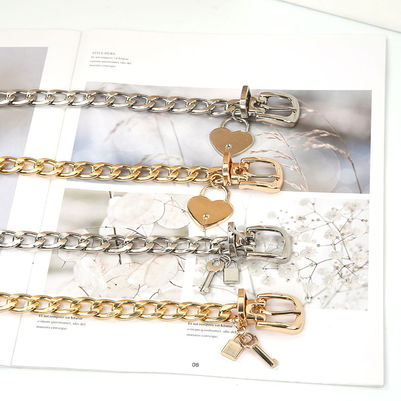 Color: semicircle pin buckle aluminum chain + love heart (gold), semicircle pin buckle aluminum chain + love heart (silver), semicircle pin buckle aluminum chain + lock (gold), semicircle pin buckle aluminum chain + lock (silver)