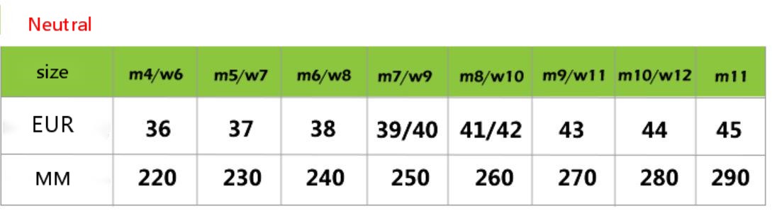 Size: M4W6=35/36, M5W7=37/38, M6W8=38/39, M7W9=39/40, M8W10=41/42, M9W11=42/43, M10W12=43/44, M11W13=45/46