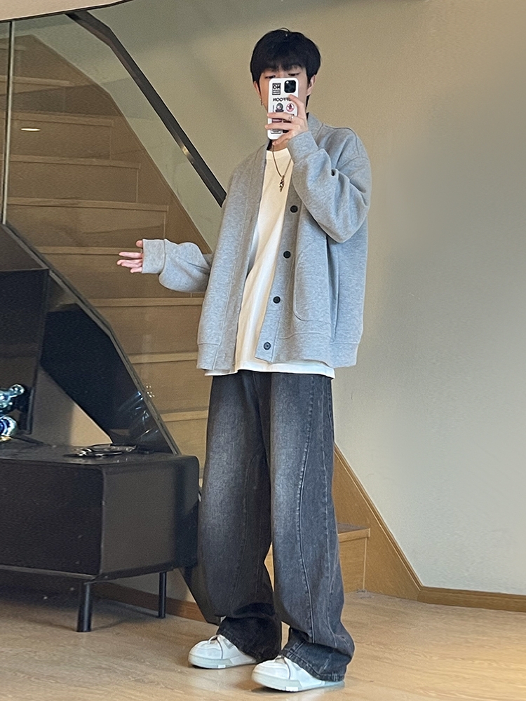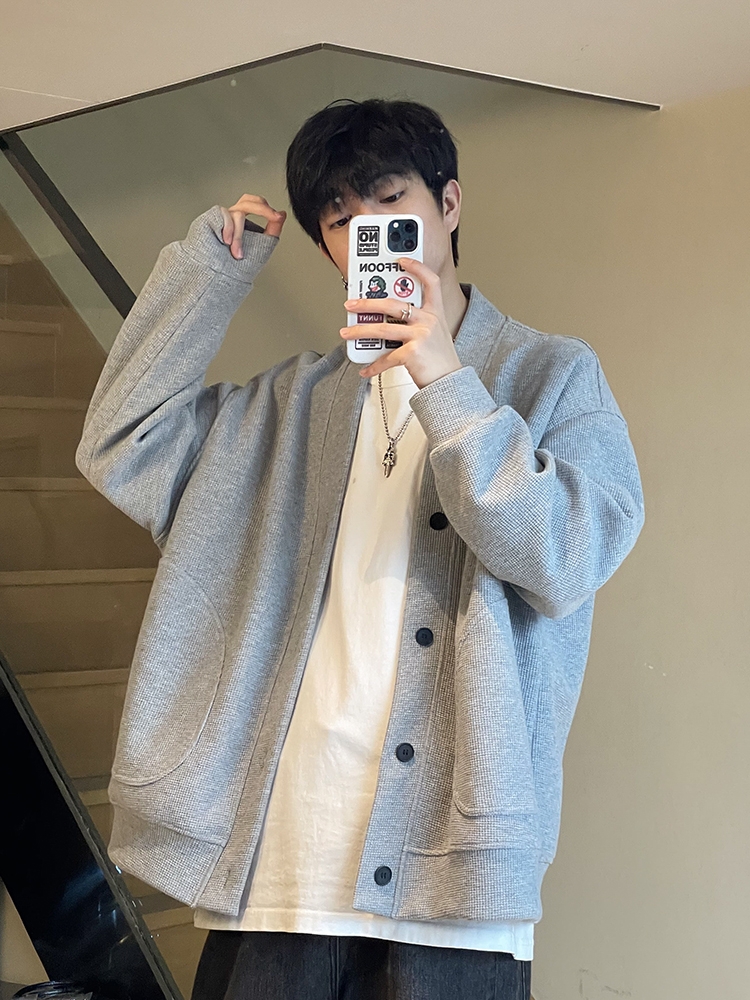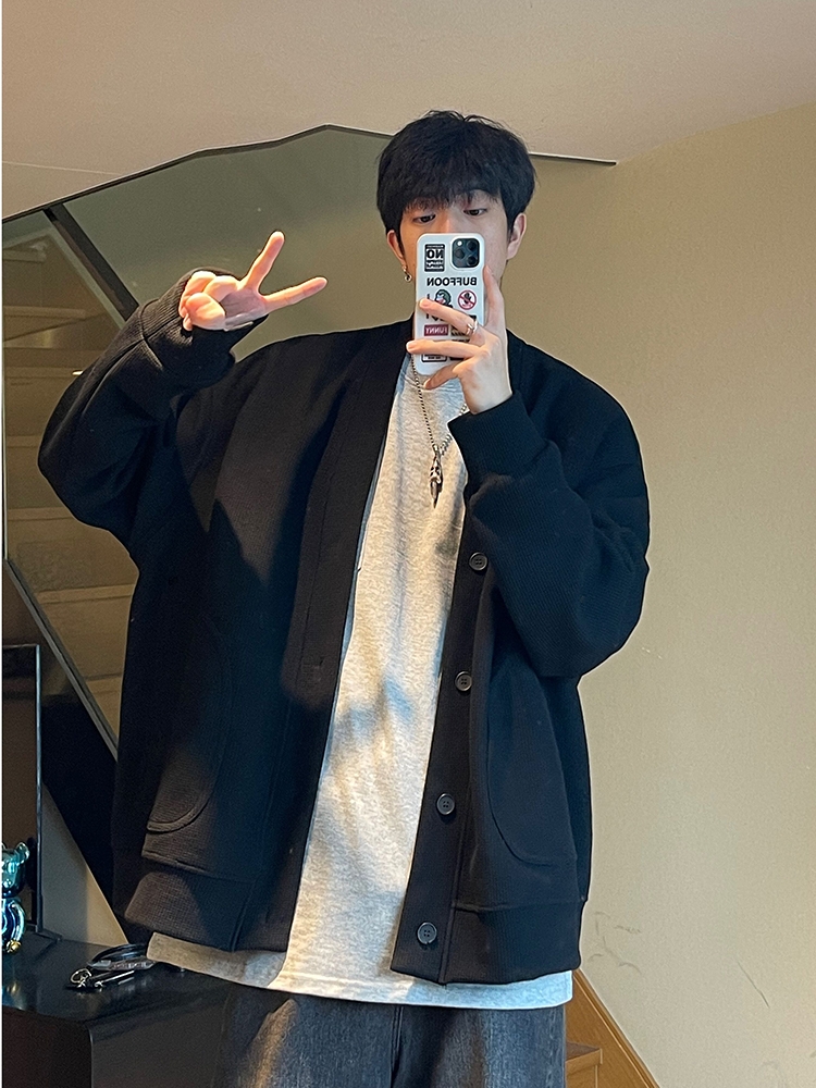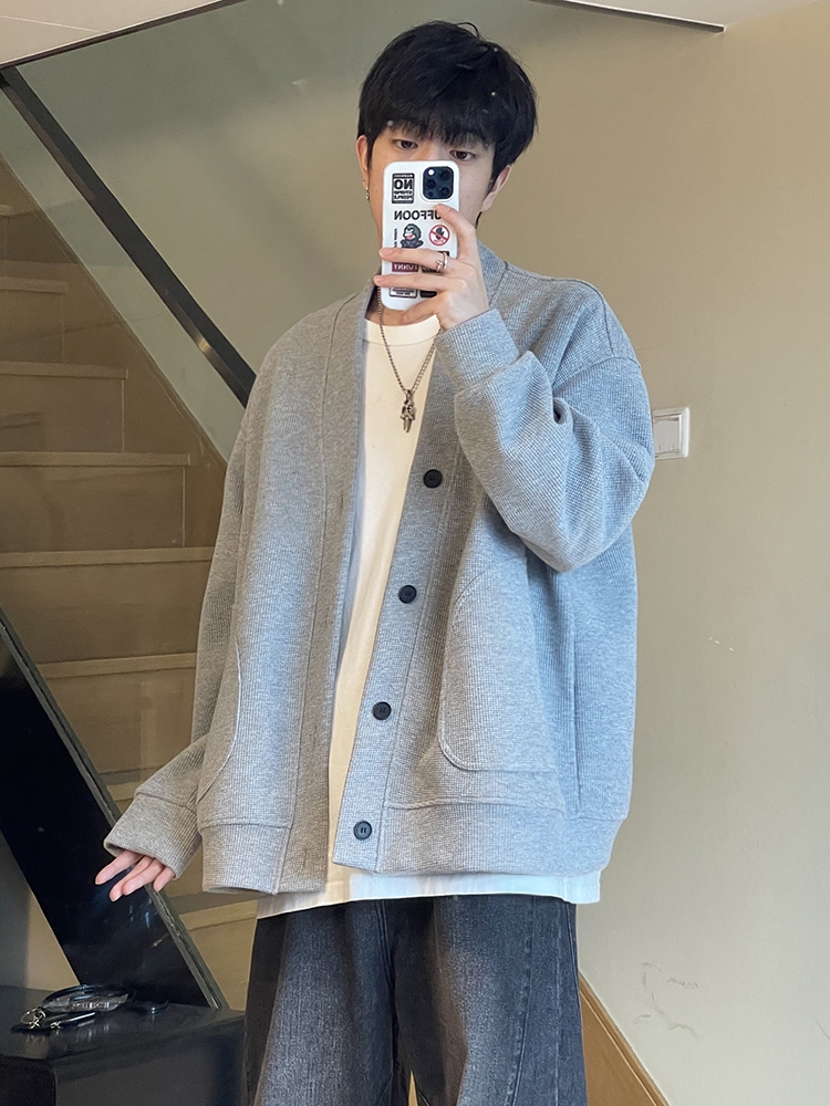 Men's And Women's Loose-fitting V-neck Long Sleeves Coat