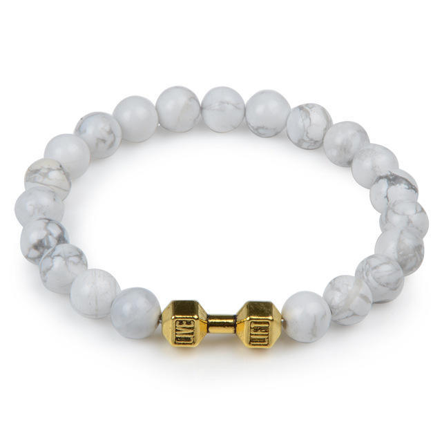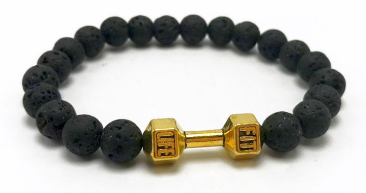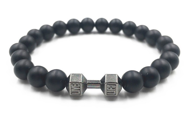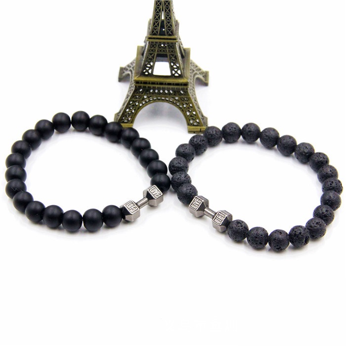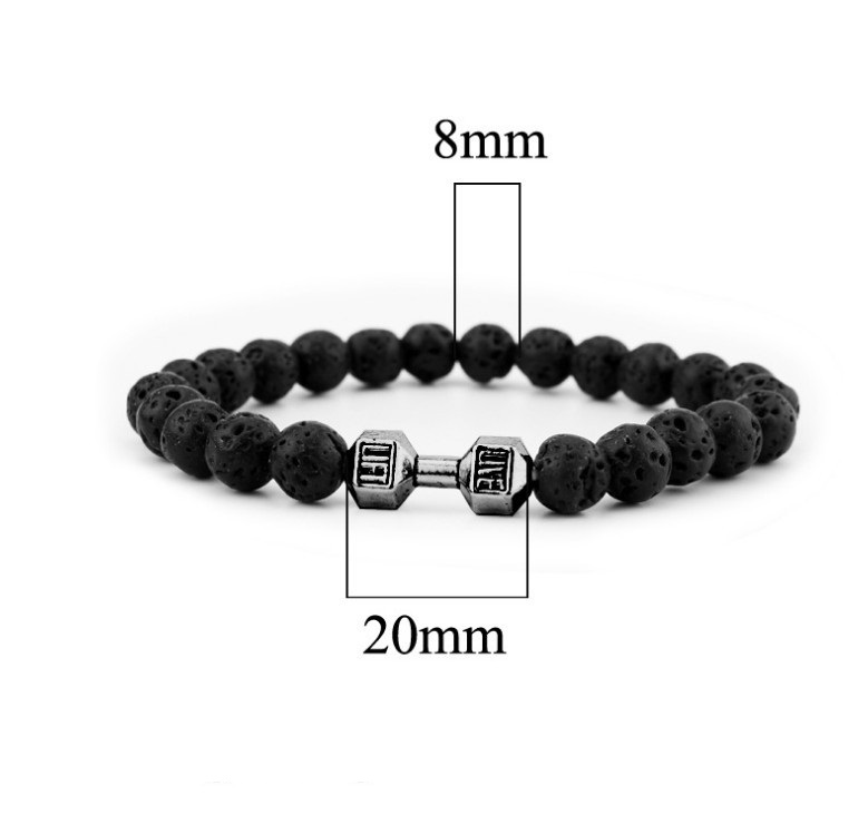 Material:8mm volcanic stone/frosted stone+alloy dumbbell+elastic rope,