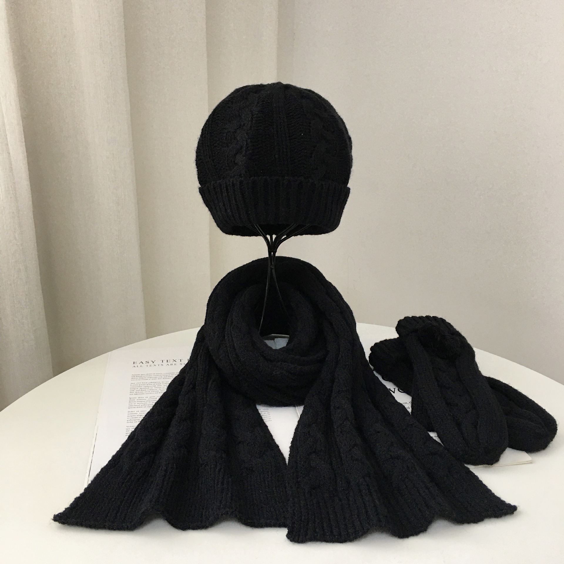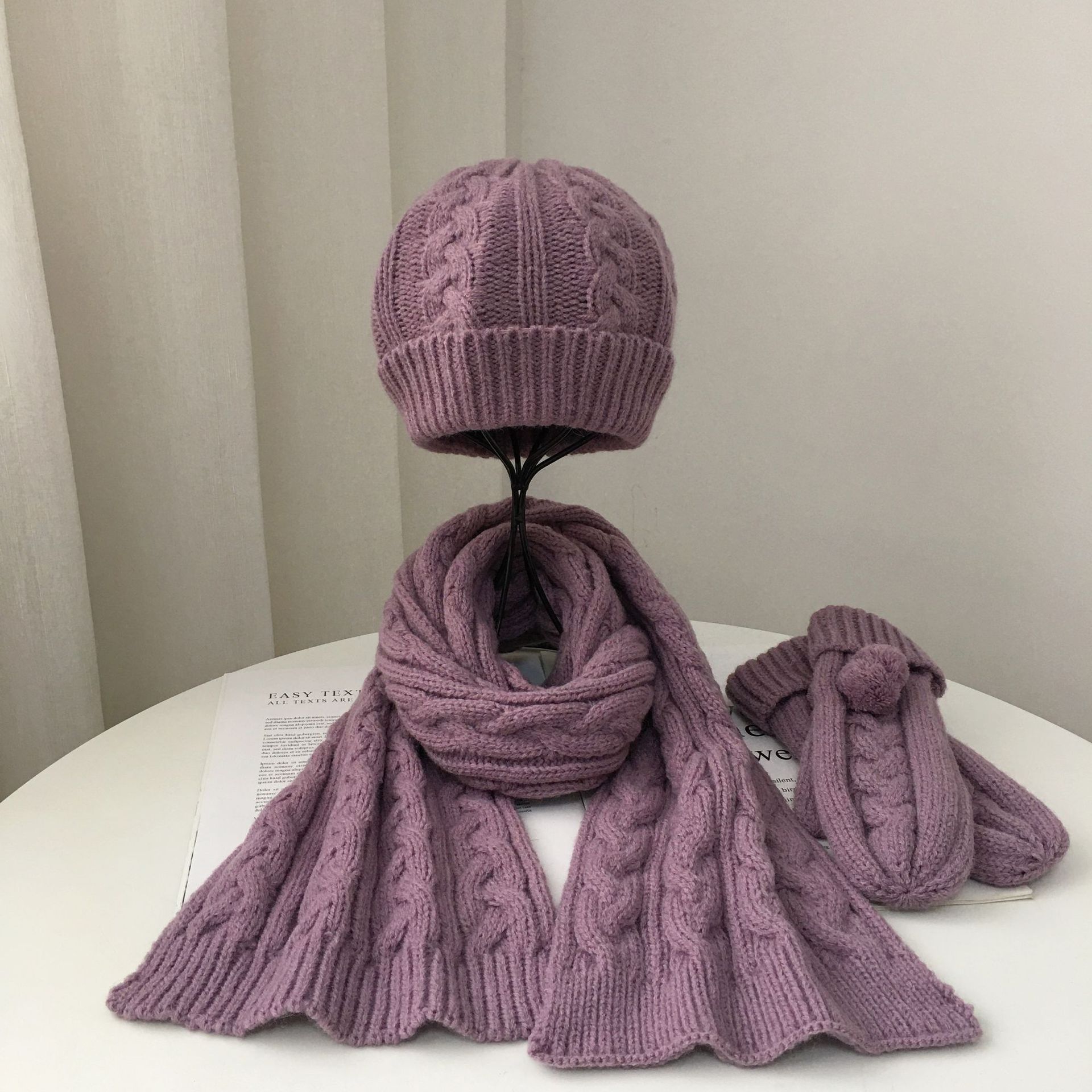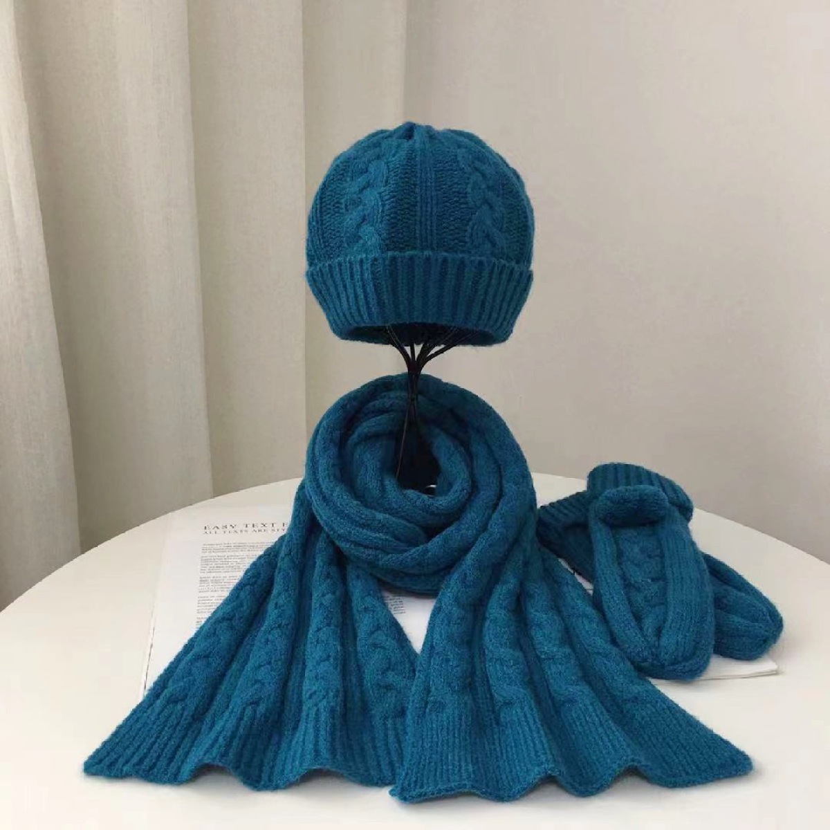 Product size: scarf 170*21cm, hat 19*19+6cm, gloves 22*8. 5cm