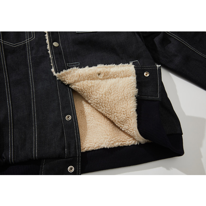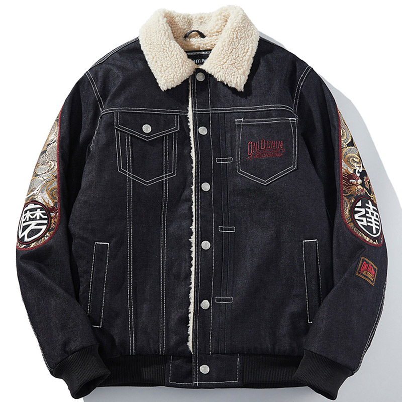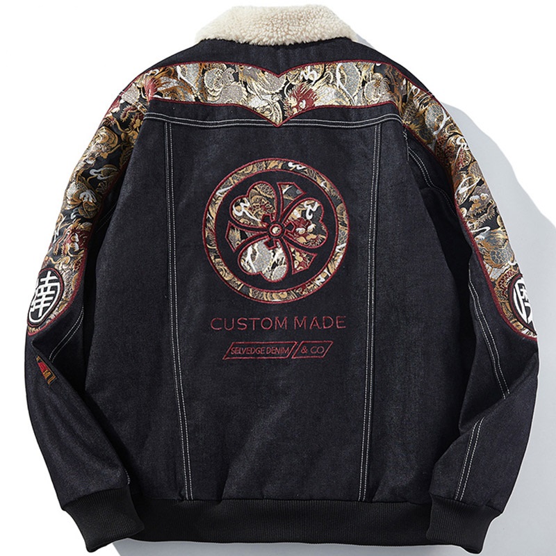 Men's And Women's Plus Velvet Thick Denim Embroidered Cotton Jacket