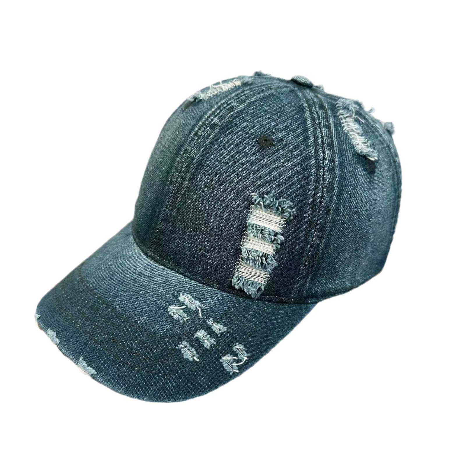 Men's And Women's Same Washed Denim Soft Peaked Cap Distressed