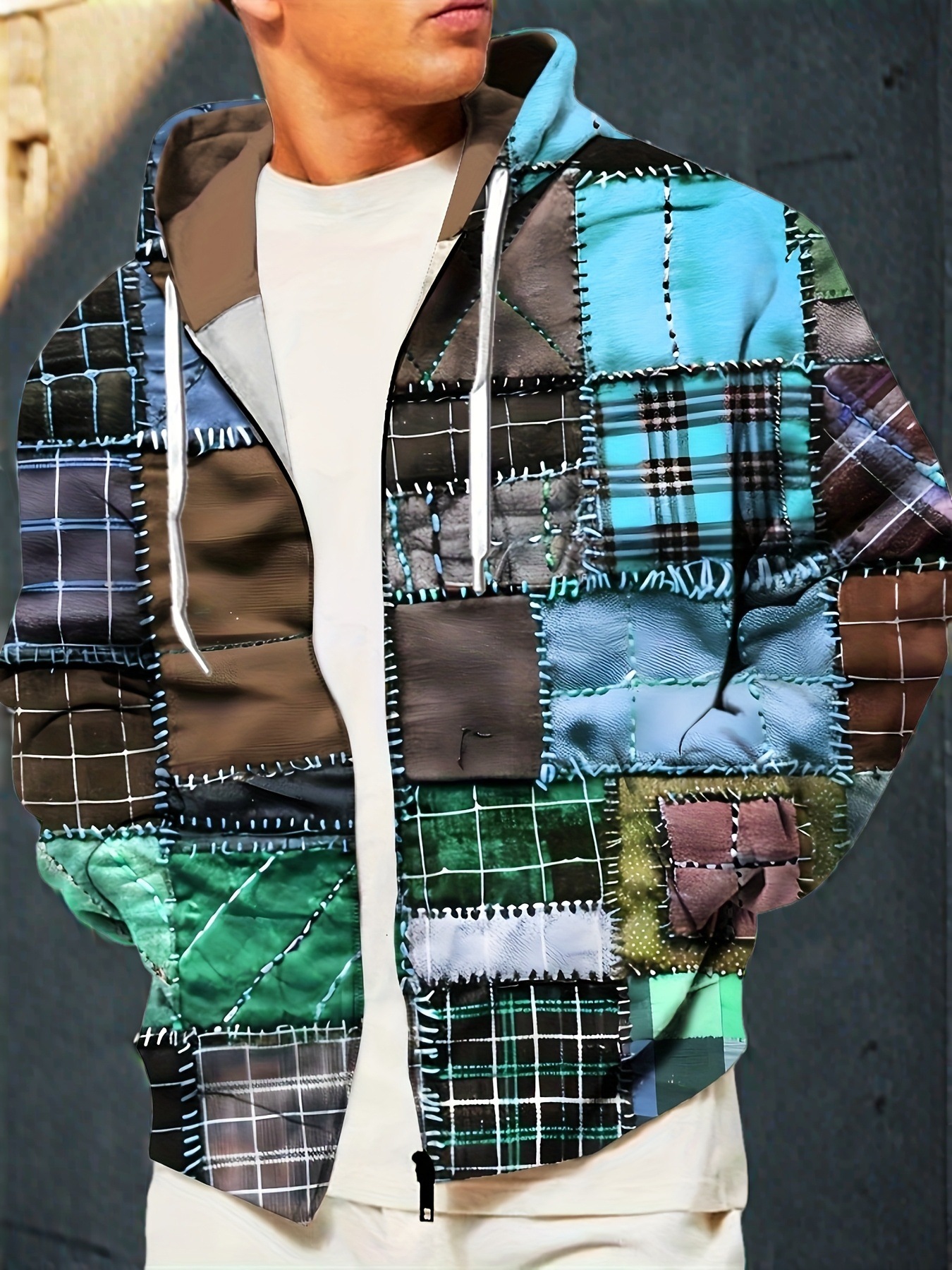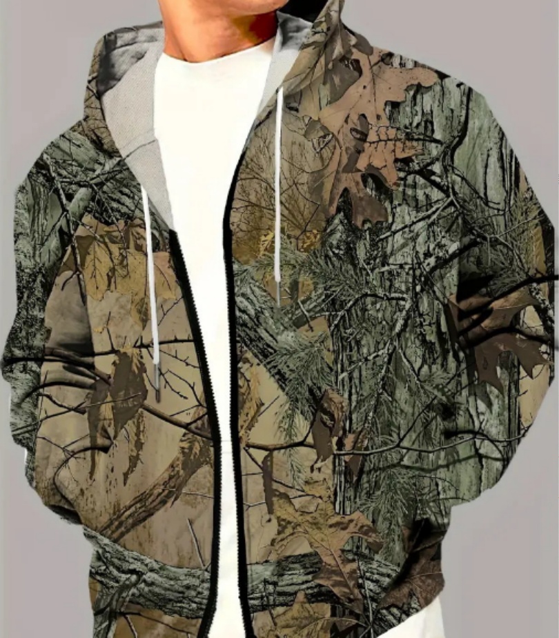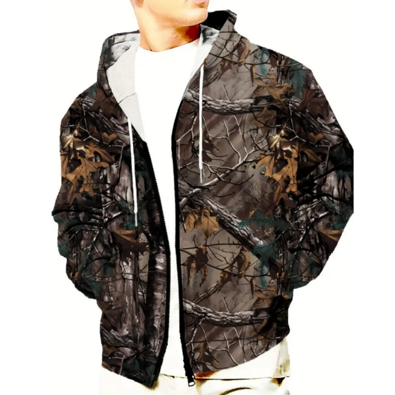 Men's Animal Pattern Eagle Full Zipper Hooded Sweatshirt Sports Outdoor