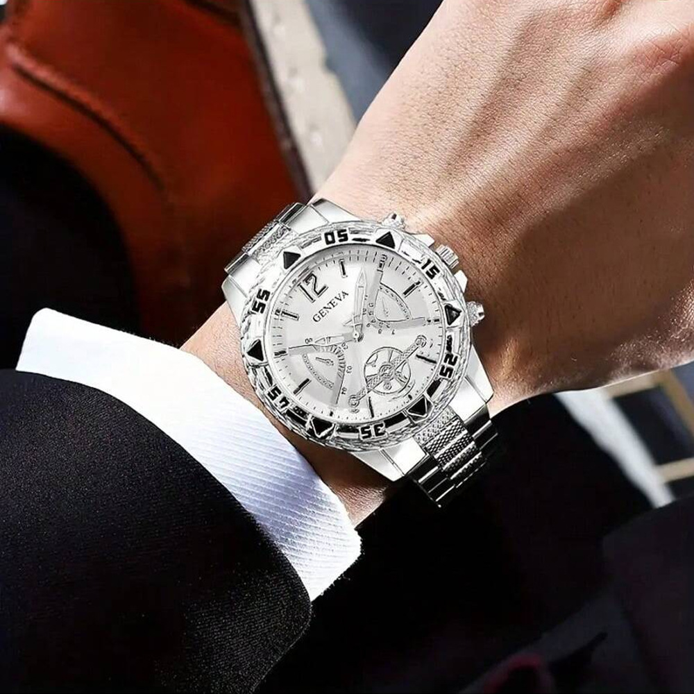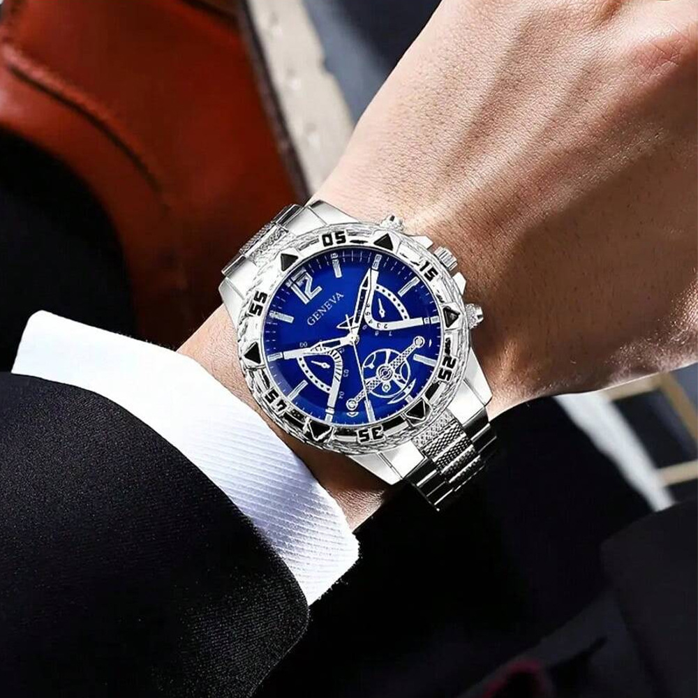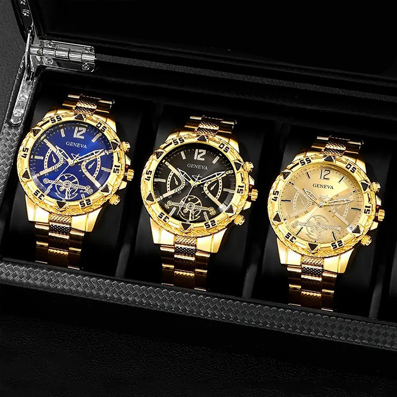 Colors: All-gold black dial, gold blue dial, gold gold dial, silver strap blue dial, silver strap black dial, silver strap white dial
