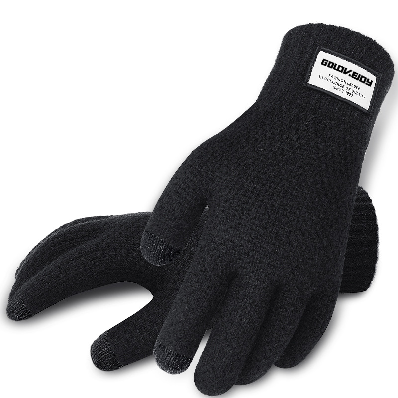 Men's autumn and winter knitted yarn driving outdoor plus velvet warm gloves