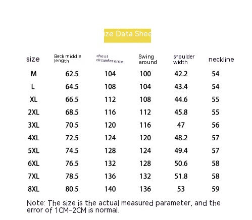 Size: M,L,XL,2XL,3XL,4XL,5XL,6XL,7XL,8XL