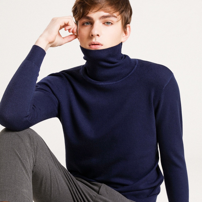 Men's Autumn Winter Sweater Solid Color Turtleneck Pullover