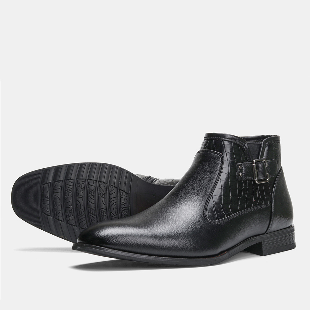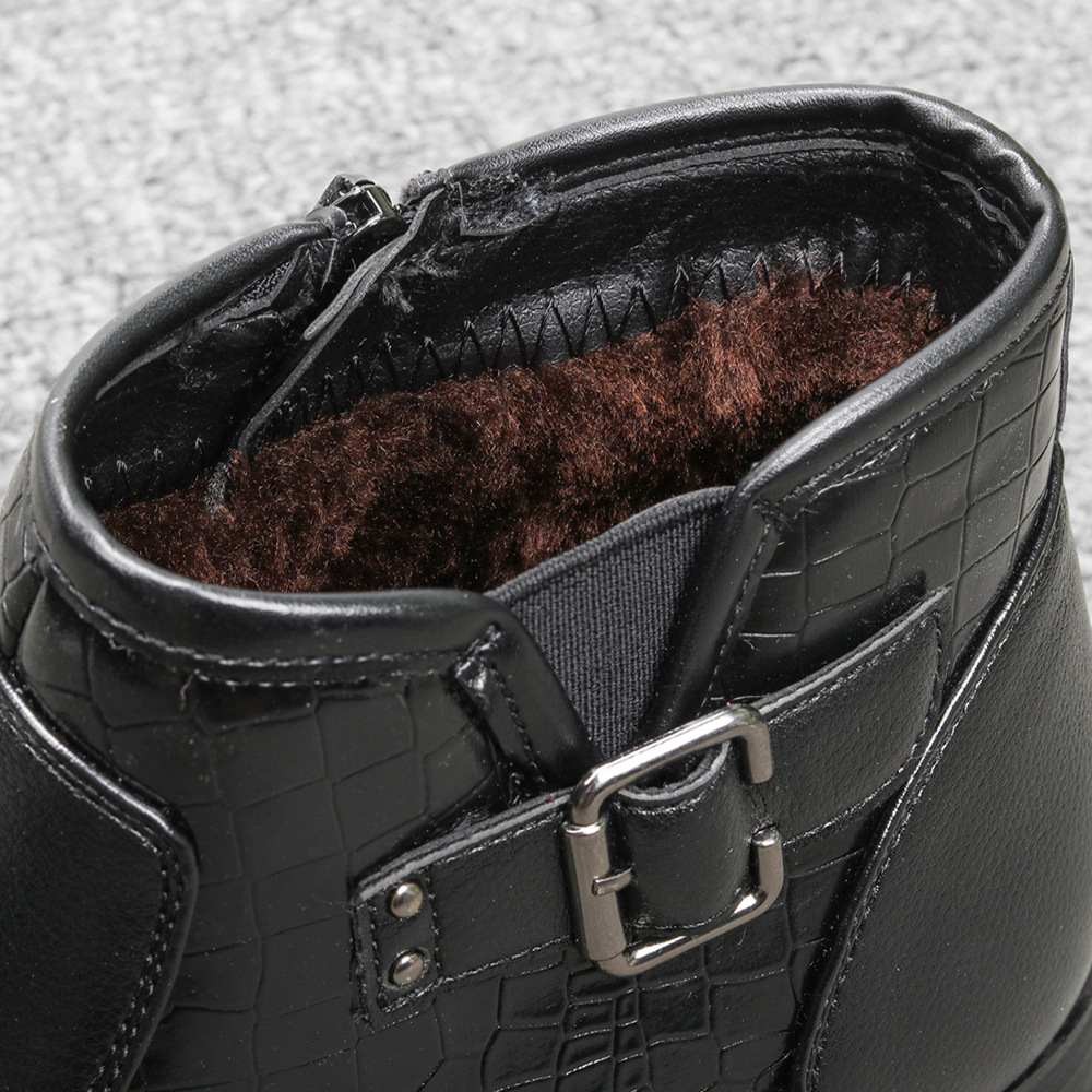 Men's Belt Buckle Side Zipper Plush Boots