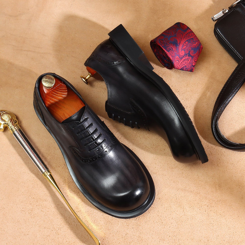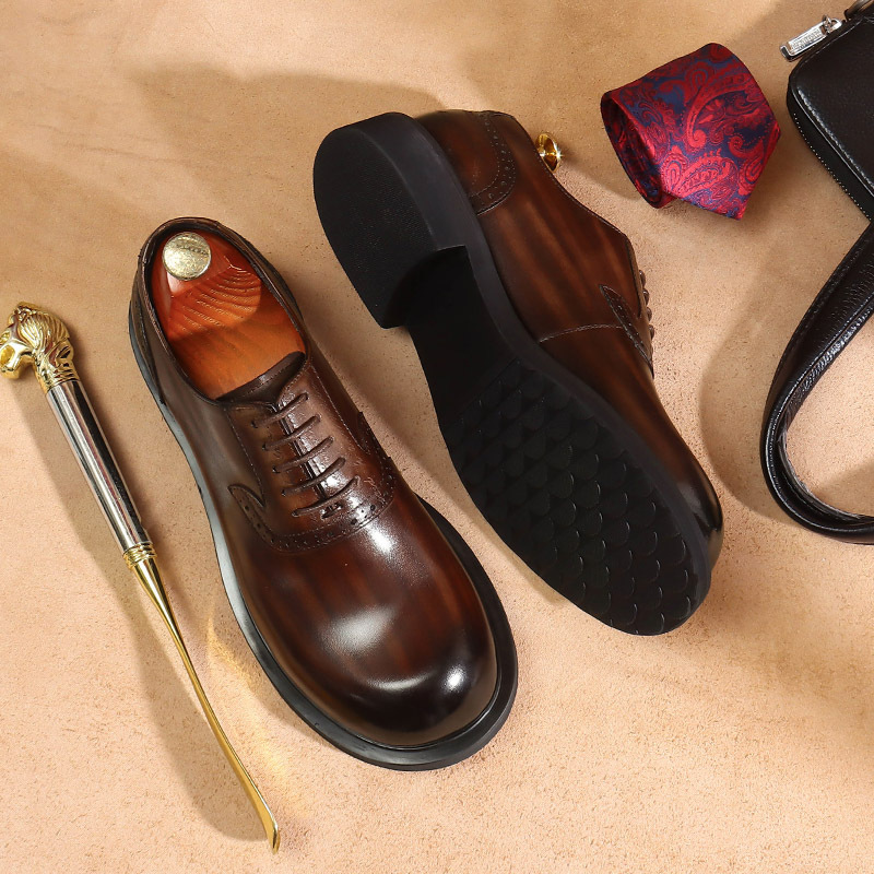 Men's Big Toe Oxford Shoes Top Layer Cowhide Soft Comfortable Stylish Versatile Business Formal Wear Leather Shoes
