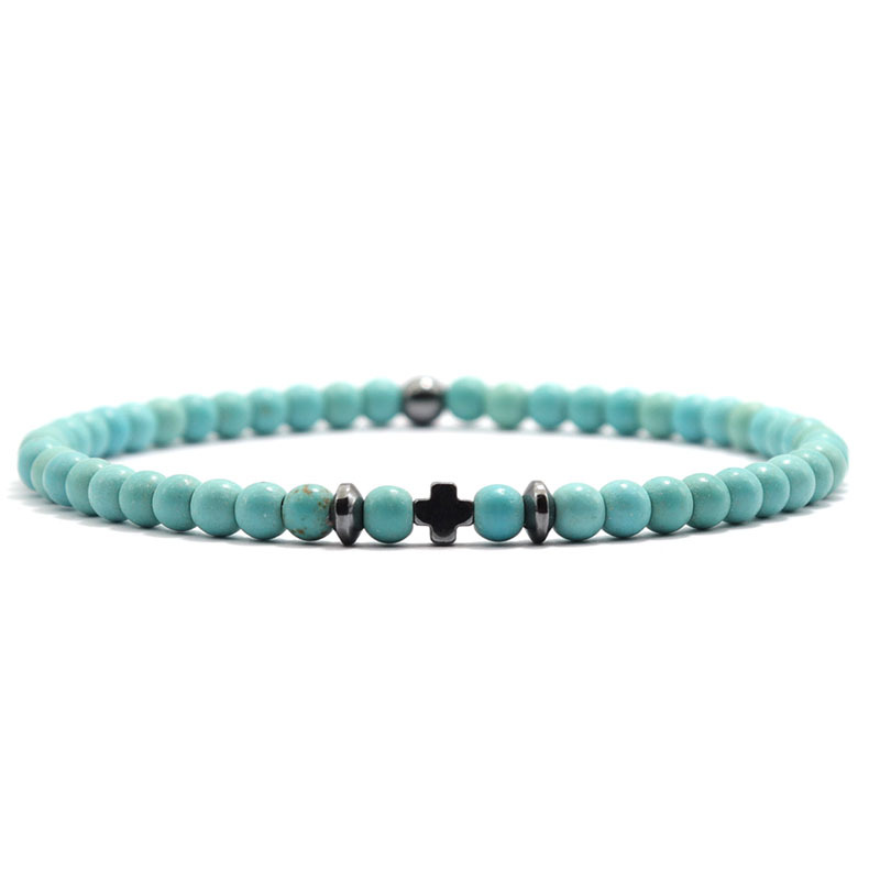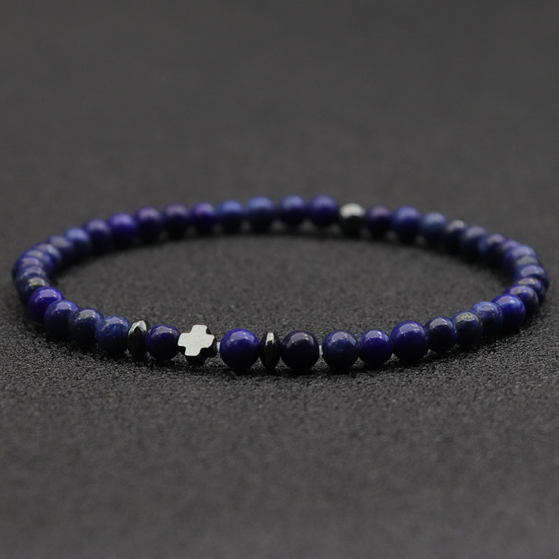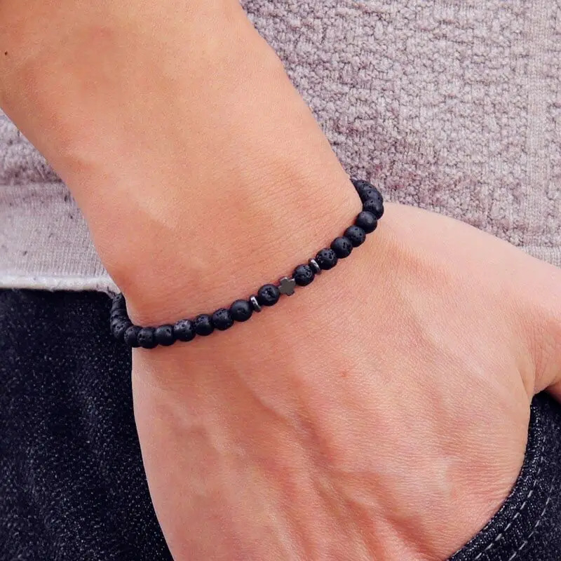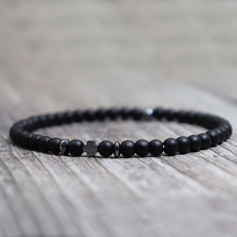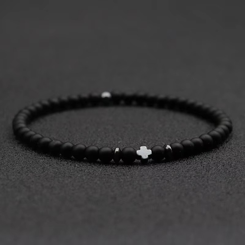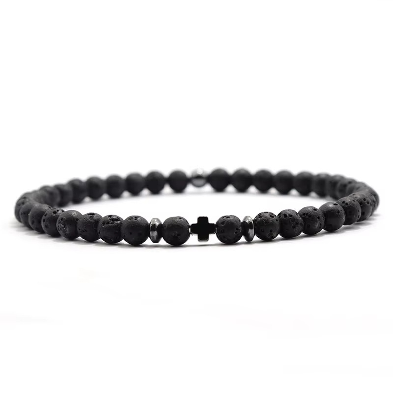 Men's Black Obsidian Cross Volcanic Stone Bracelet