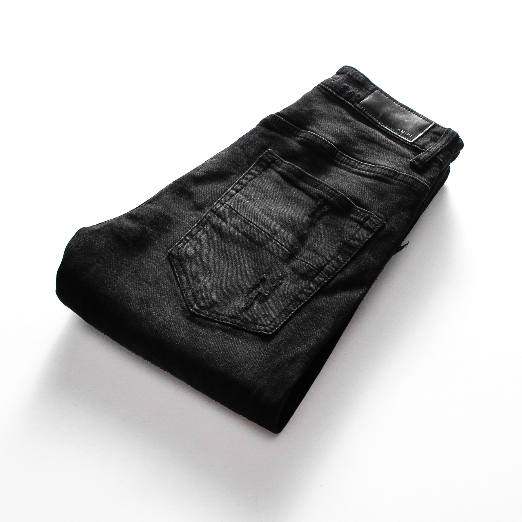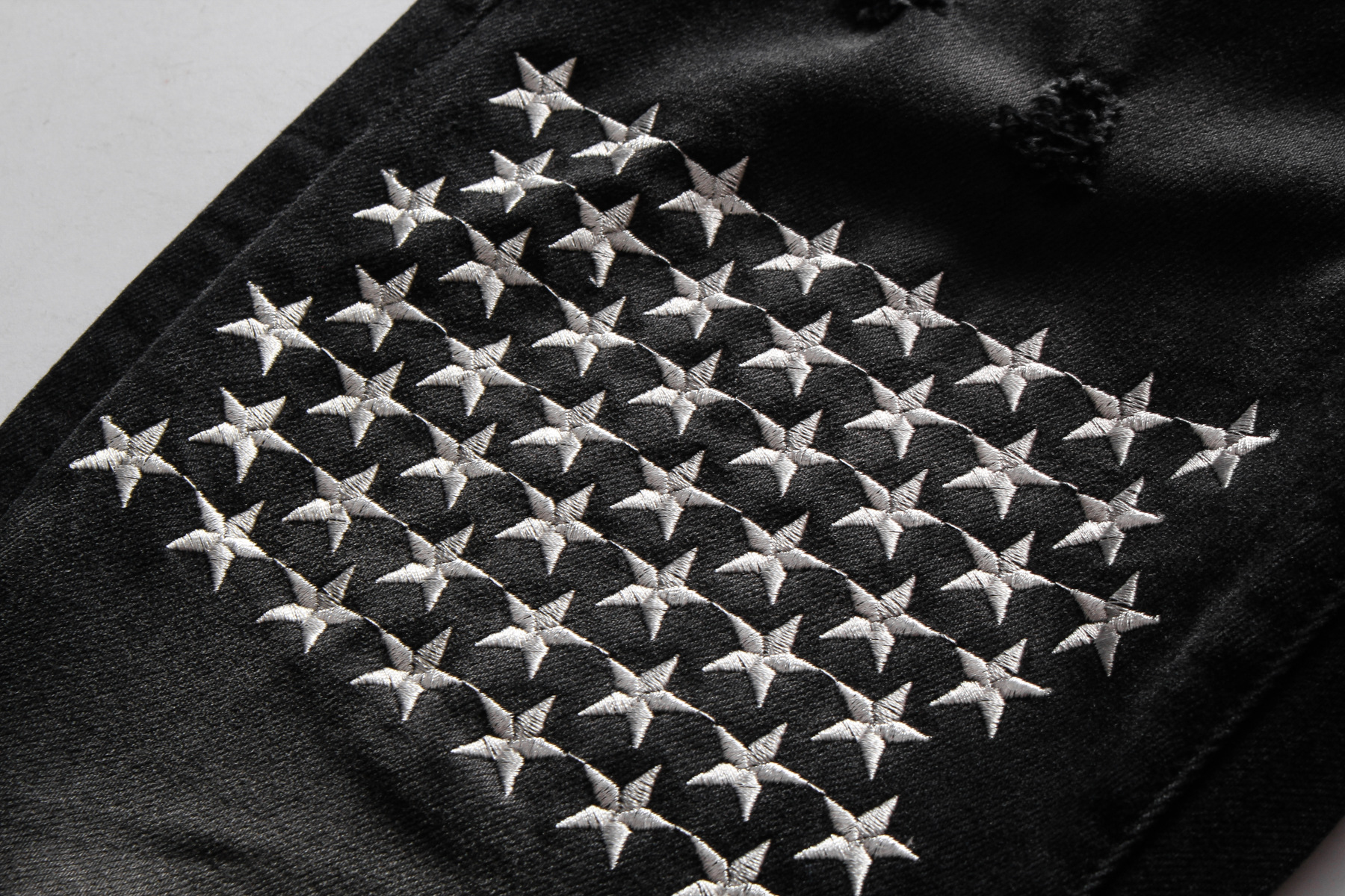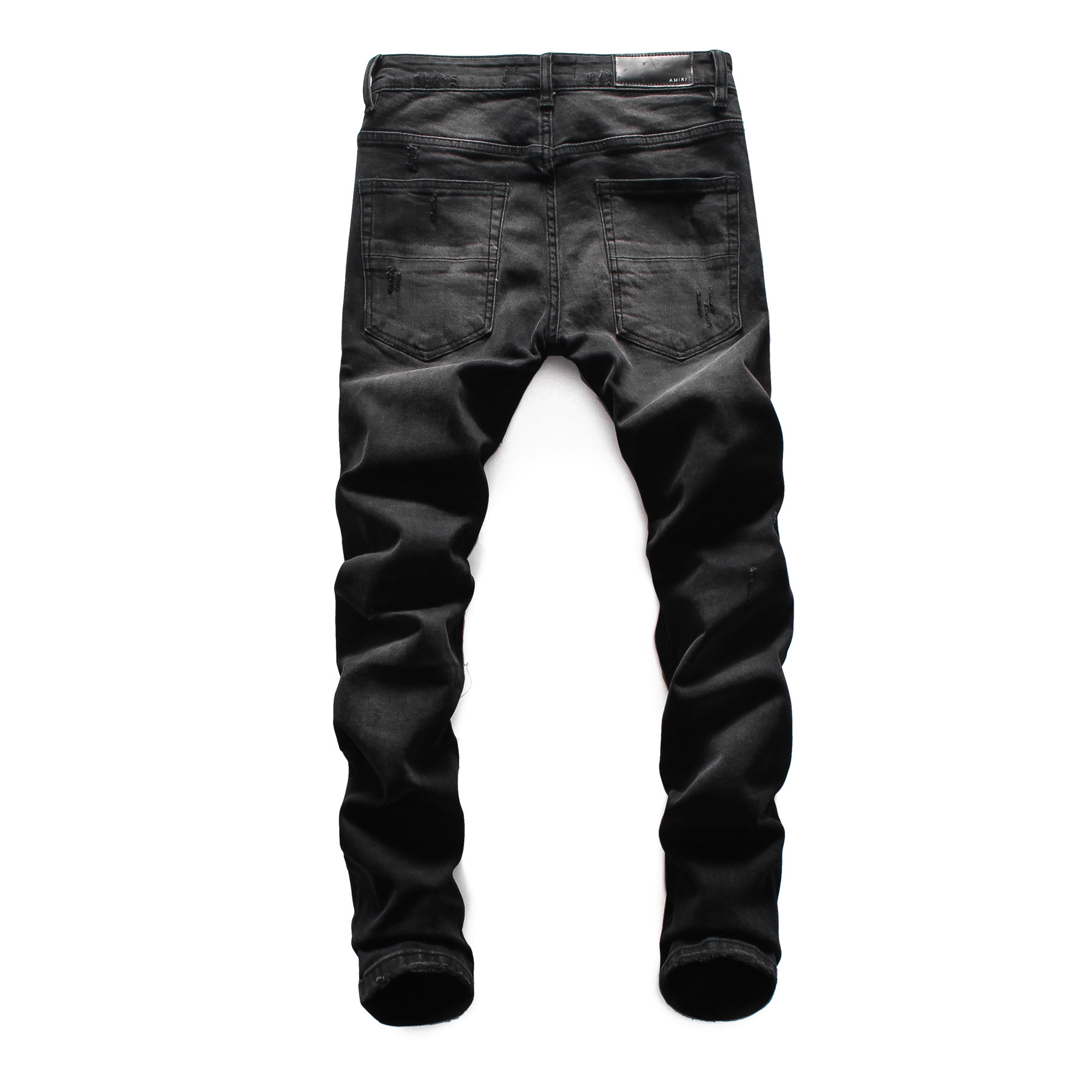 Men's Black Patch Jeans Slim Fit Hong Kong Style