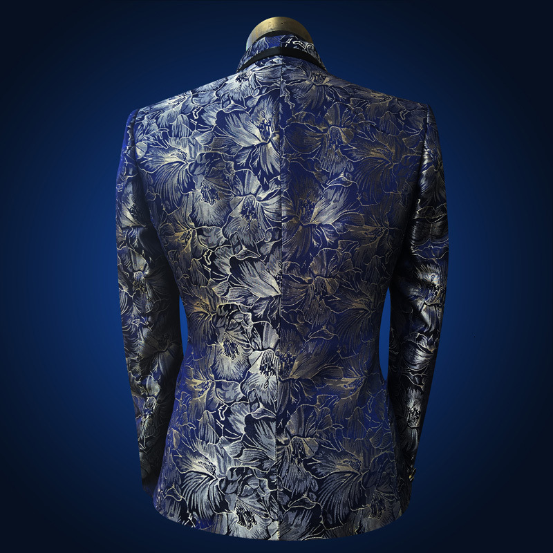 Men's Blue Floral Wedding Singer Prom Suit