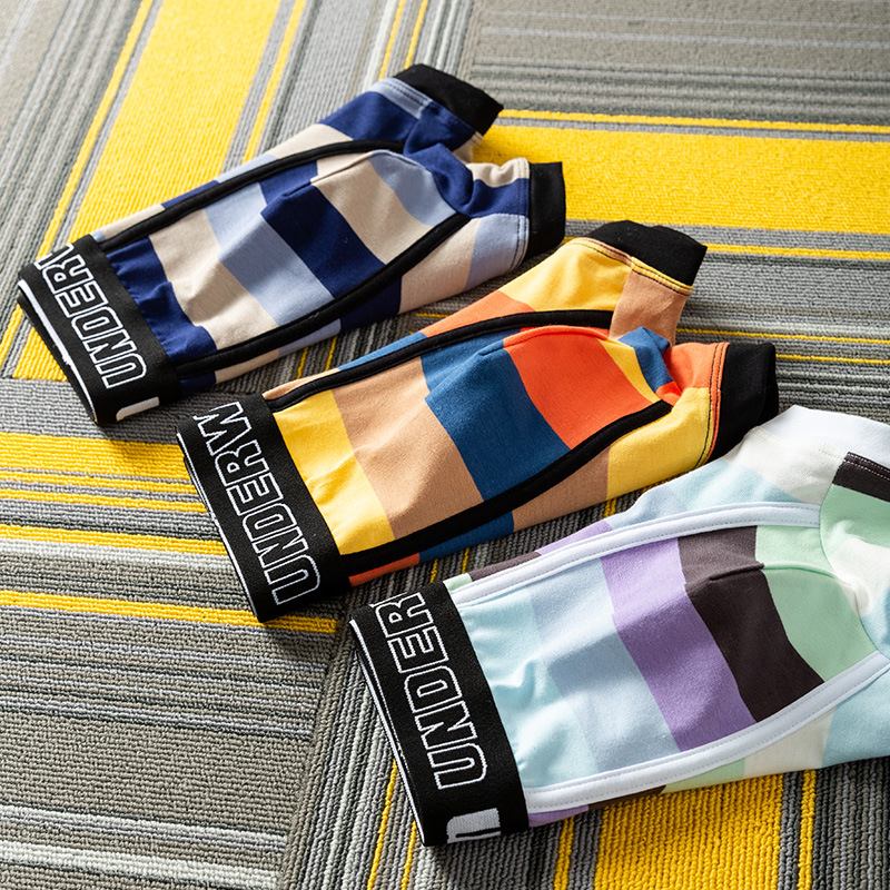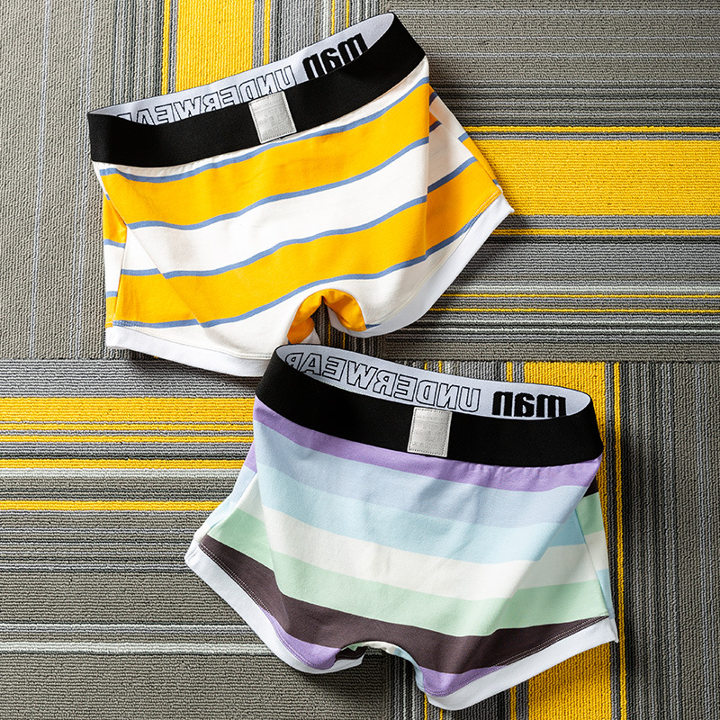 Men's Boxers Cotton Youth Summer Breathable Sports Personalized Cute Boxer Trend Stripes