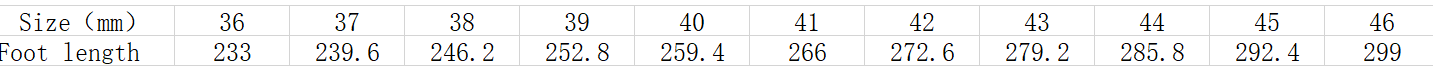Size: 36, 37, 38, 39, 40, 41, 42, 43, 44, 45, 46