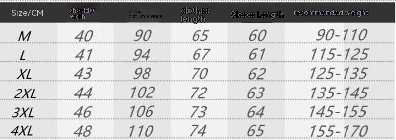 Size: M (47.50kg-55.00kg,L (55.00kg-62.50kg,XL (62.50kg-67.50kg,2XL (67.50kg-75.00kg,3XL (75.00kg-80.00kg, 4XL (80.00kg-87.50kg)