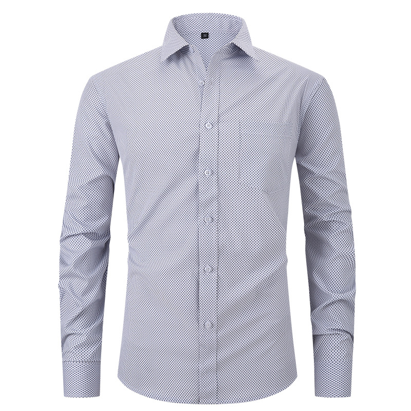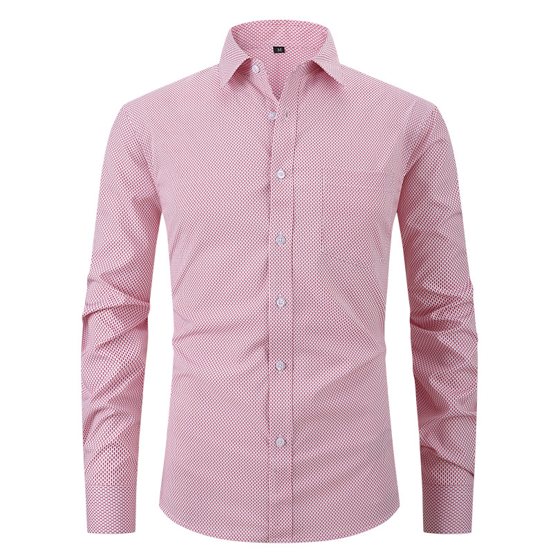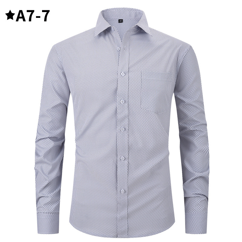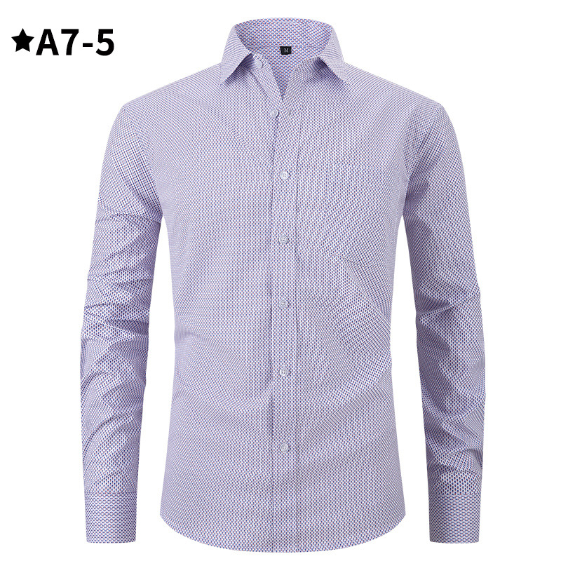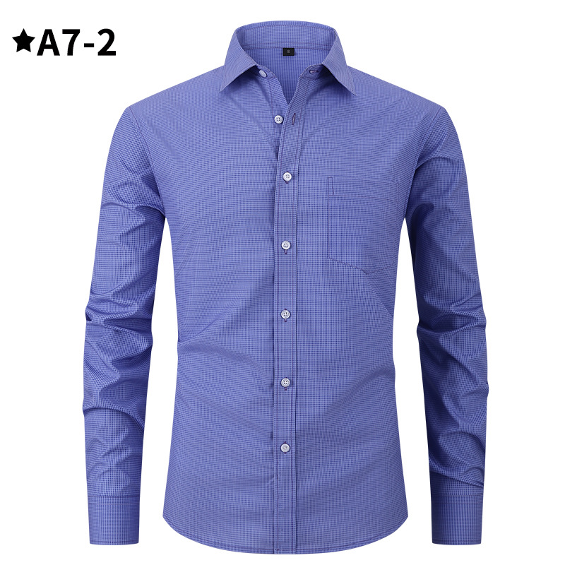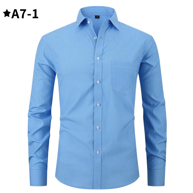 Men's Business Formal Solid Color Polo Collar Plaid Shirt