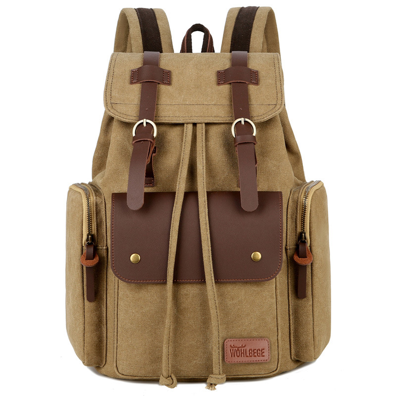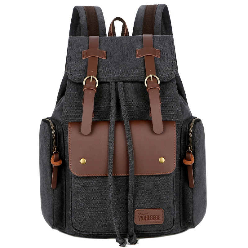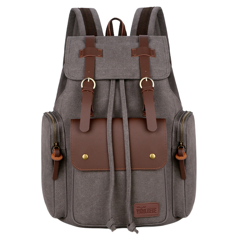 Men'S Canvas Backpack Computer Backpack Europe And America Retro Crazy Horse Leather Backpack Men'S Bag